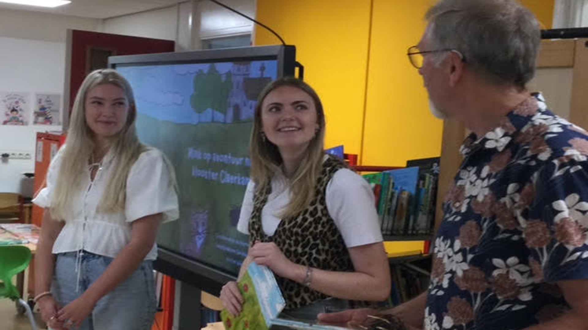 RINSUMAGEAST – Op dinsdag 8 juli jl. presenteerden Daniëlle Kingma, Femke Braaksma en Kirsten Wiersma, studenten aan NHLStenden pabo, het prentenboek: ‘Mink op avontuur naar klooster Claerkamp’ aan de kinderen van basisschool De Tarissing in Rinsumageast. Zij maakten dit prentenboek als opdracht voor het leergebied Kunst in Cultuur, met als doel dat de kinderen uit de regio Rinsumageast kennis krijgen van de historie van Klooster Clearcamp.