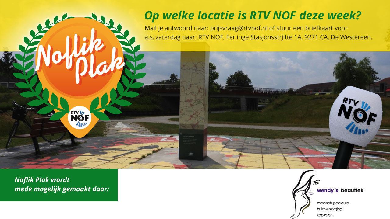 Ook dit seizoen is er weer een prijsvraagrubriek: Noflik Plak. Elke week ligt de RTV NOF microfoon op een andere plek in Noordoost Fryslân. Weet jij waar? Laat het ons voor zaterdag 9 september weten via: prijsvraag@rtvnof.nl en win een leuke verrassing van één van onze sponsoren.