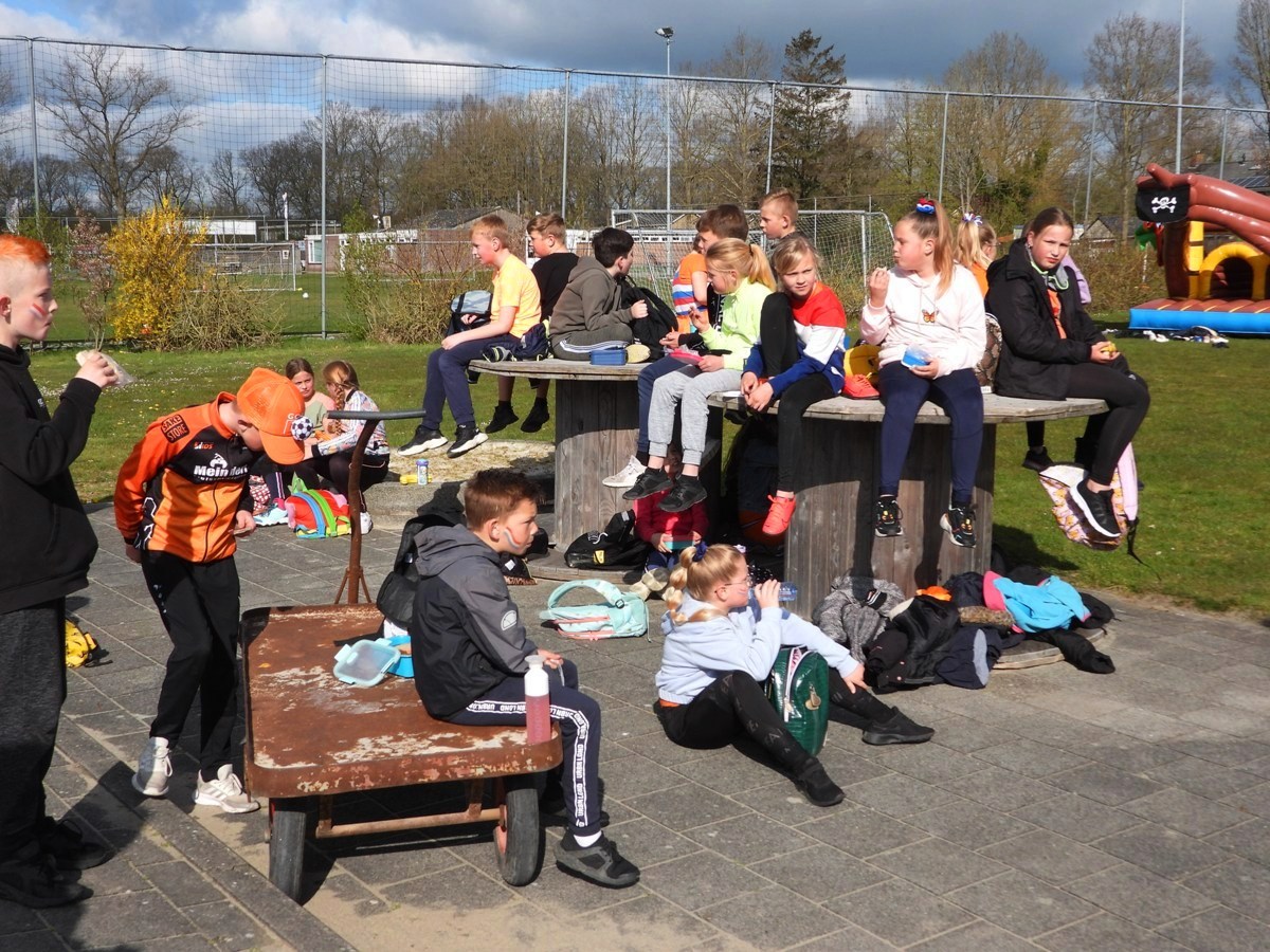 De ouderraden zorgde voor lekkere ijsjes om even af te koelen van het geren en gespring en beiden scholen sloten de dag af met gezellige spelletjes zoals muziekbingo of een Koningsquiz.