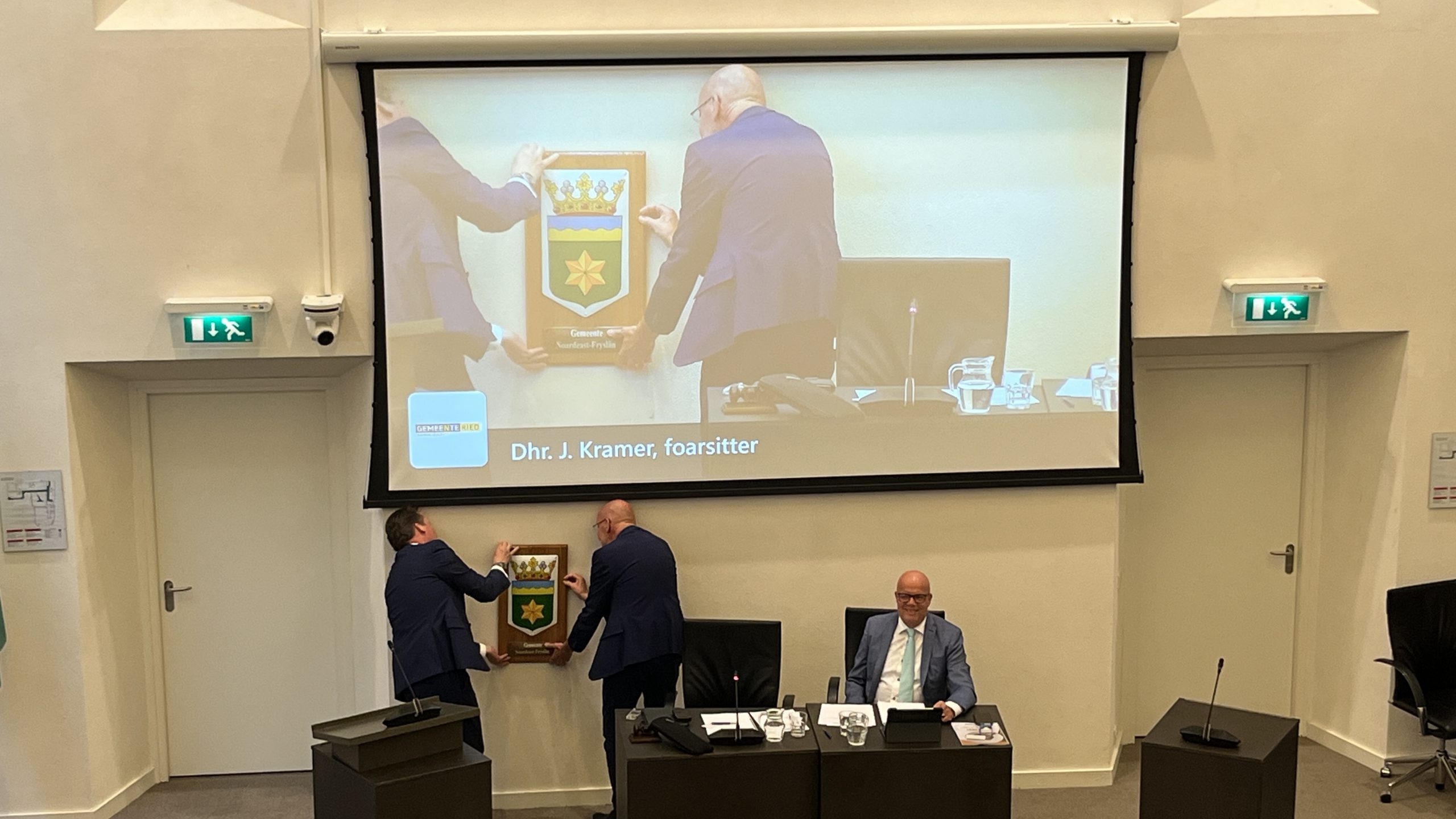 Als officieel moment werd het ‘Noardeast-Fryslân-tegeltje’ door burgemeester en voorzitter Johannes Kramer en bode Simon Vellema opgehangen in de oude raadszaal van Dongeradeel. Het interieur is, net als het tegeltje, vanuit Kollum meegenomen naar Dokkum. Daarnaast is de zomertemperatuur ook goed voelbaar in de raadszaal.