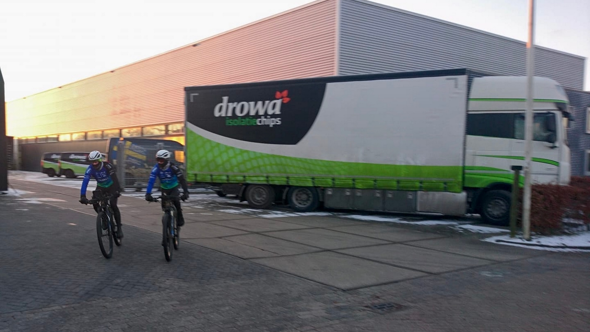 ‘Met een temperatuur van elf graden onder nul reden we om acht uur weg uit Dokkum, een mooie opkomende zon tegemoet. Het grootste deel hebben we over de weg gereden maar vanaf Oudkerk zijn we over het ijs naar Leeuwarden gereden en ook na Franeker en Bartlehiem hebben we een stuk ijs meegepakt. Mooi om Friesland in de sneeuw te zien en voor ons een mooie trainingsrit in deze wedstrijd loze periode. In totaal reden we 218 kilometer en door het betere ‘brommerwerk’ van Ramses waren we ruim binnen de acht uur weer terug in Dokkum om aan te schuiven voor een uitsmijter met kaas bij onze sponsor Drowa!’