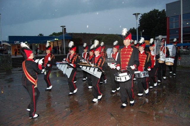 Het Tamboerkorps speelde uiteraard hun eigen muziek en er werd een schitterende showoptreden gegeven. Het publiek, dat schuilde onder bomen en paraplu’s, was erg enthousiast. Volgend jaar bestaat TLM ‘Kollum’ 35 jaar. De leden zijn toe aan nieuwe pakken. Binnenkort zullen acties op touw worden gezet om hiervoor geld in te zamelen.