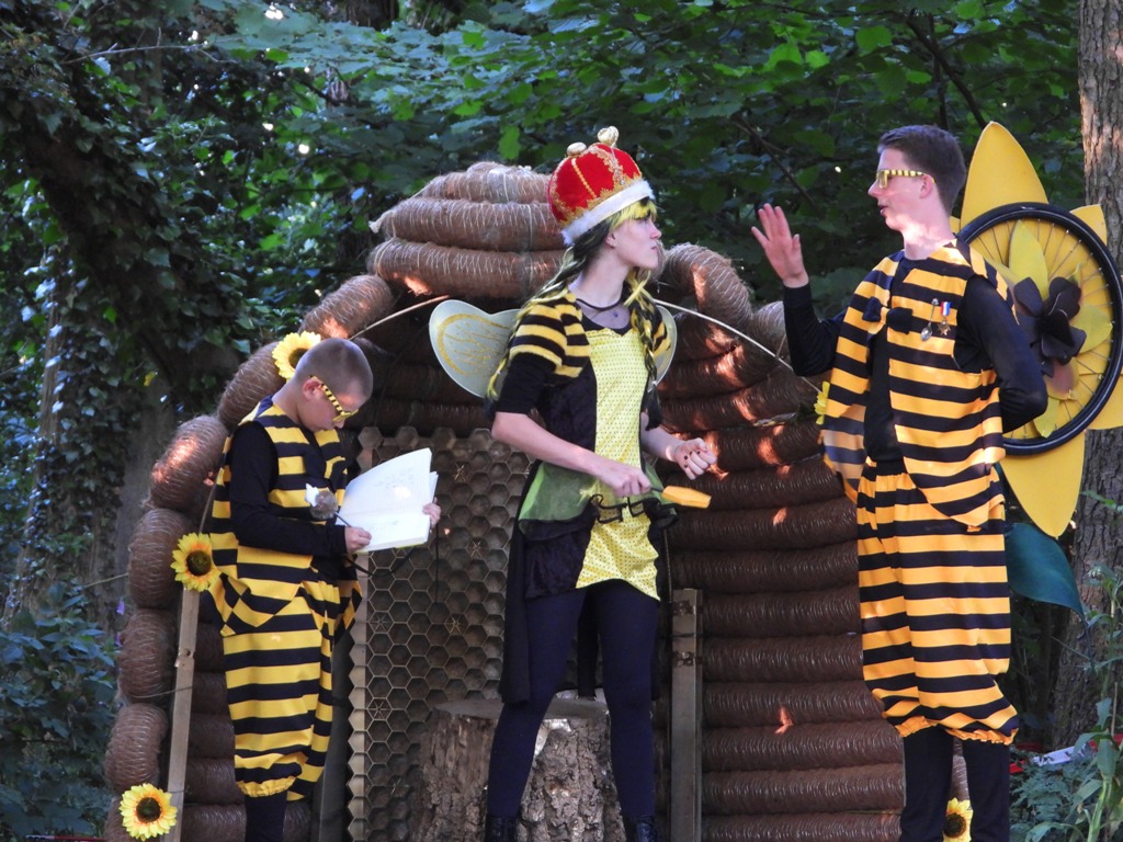 ALDWALD – Het bruist in het bos naast de ijsbaan van Aldwâld. Jonge theatertalenten uit de regio zijn daar deze weken vol enthousiasme aan het repeteren voor hun nieuwste productie, genaamd “Hommeles: De avonturen van Maja de Bij”. Deze voorstelling van Masquerade Theater is een creatieve samensmelting van de geliefde verhalen “Erik van het klein insectenboek” en “De avonturen van Maja de Bij”, aangevuld met gloednieuwe verhalen die bedacht zijn door de jonge talenten zelf. ” Dizze repetysje wie yn klean, dat spilet fuortdaliks oars, grutte spurt makke jûn”, zo laten de makers weten. “Wat in plaatsje binne se”.
