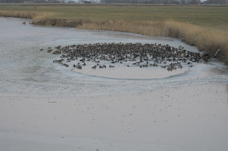 Het is inmiddels februari en behoorlijk winter. Wanneer we nu om ons heen kijken, dan zullen we zien dat er aardig wat vogels zijn vertrokken naar warmer oorden. De kievit en de wulp bijvoorbeeld zijn tot afgelopen vrijdag behoorlijk talrijk nog in onze regio aanwezig geweest. Ze zijn allemaal vertrokken. Hun voedsel halen ze uit de bodem, en die is nu keihard bevroren. De vogels die hier nu zijn, of blijven zijn gras-en bessen eters. De ganzen en de zwanen kunnen het hier lang uitzingen zolang er niet al te veel sneeuw ligt.