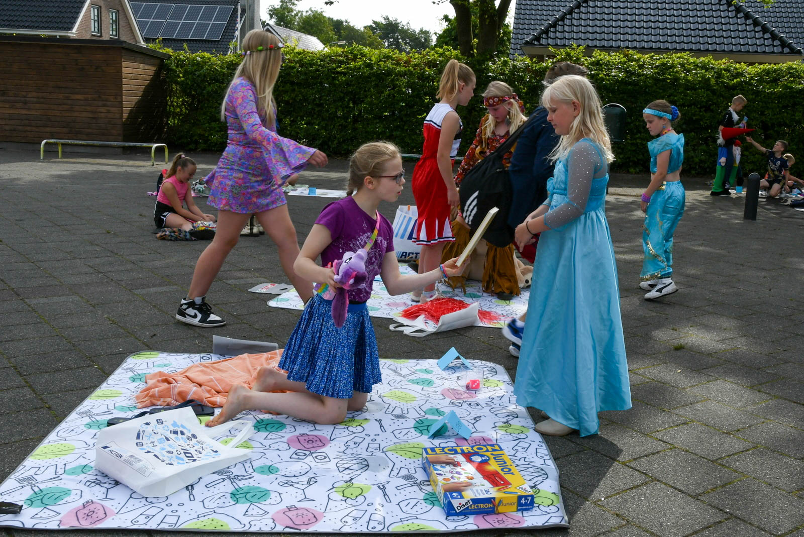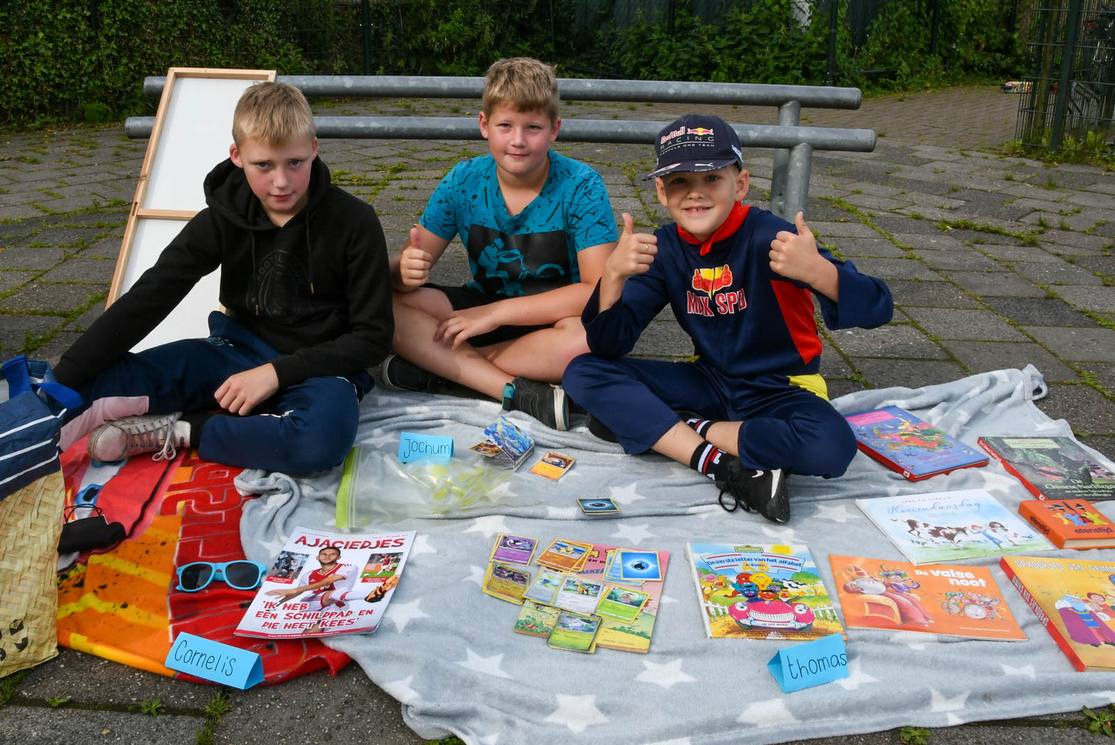 KOLLUMERSWEACH – Op donderdag 18 juli was het de laatste schooldag voor de groepen 3 t/m 7. Groep 8 was woensdag al voor het laatst. Groep 1 en 2 hadden een poppenkastvoorstelling in het speellokaal. Er was voor de leerlingen deze dag een ruilbeurs van speelgoed en spulletjes. Op een kleedje konden de meegebrachte spulletjes worden uitgestald. En het weer werkte goed mee. Van te voren waren er regels opgesteld en besproken, zodat er geen verdrietige en teleurgestelde kinderen zouden zijn. Ouders konden langskomen en er werd volop ‘handel’ gedaan. Op deze manier is er voor veel kinderen weer ander speelgoed om mee te spelen in de vakantie. Om half elf trakteerde juf Bettie de hele school op een ijsje.