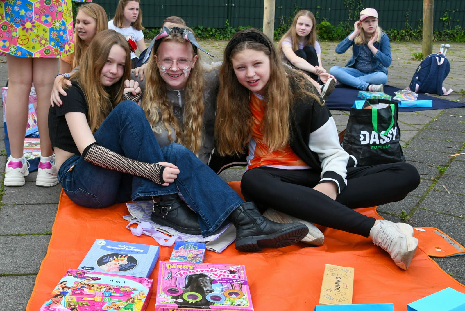 Na de 2e ronde ruilen kon er worden opgeruimd en de overige spulletjes terug gedaan worden in de tas. Anderen gaven het overgeblevene weg. Het was een groot succes. Rond 12.00 uur lagen de kleedjes nog wel en met een eigen meegebracht bord, kon de Activiteitencommissie langslopen met patat. Dit was vandaag de lunch. De AC van de Stapstien was woensdag al bezig met het versieren van het plein en vanmorgen vroeg werd er voor de hele school fruit en hartige hapjes klaargemaakt voor de 1e pauze. Bovendien werd er van elke groep een groepsfoto gemaakt. Een onvergetelijke herinnering aan het schooljaar 2023-2024.