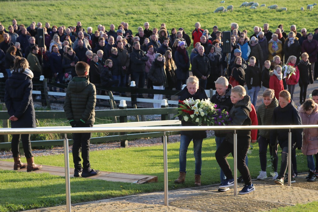 Bij het monument aan gekomen speelde Chr. Muziekvereniging “Advendo” uit Munnekezijl een lied/koraal, daarna hield wethouder Jelle Boerema van de gemeente Noardeast-Fryslân een toespraak. Een leerling van de Chr. Basisschool “de Wegwijzer” uit Kollumerpomp Mare Hollander las een toepasselijk gedicht voor.