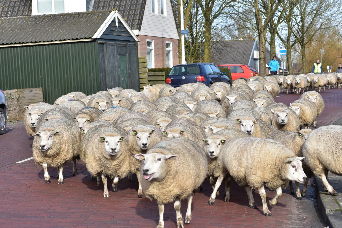 Om de schapen op de stal te krijgen moeten ze verplaatst worden, dit kan op twee manieren; in een veewagen, of zoals Van Sinderen al jaren doet gewoon te lopen. Zo ook dit jaar, zaterdagochtend werd de kudde dampende schapen vanuit de Ternaarderpolder lopend naar de stal gebracht.