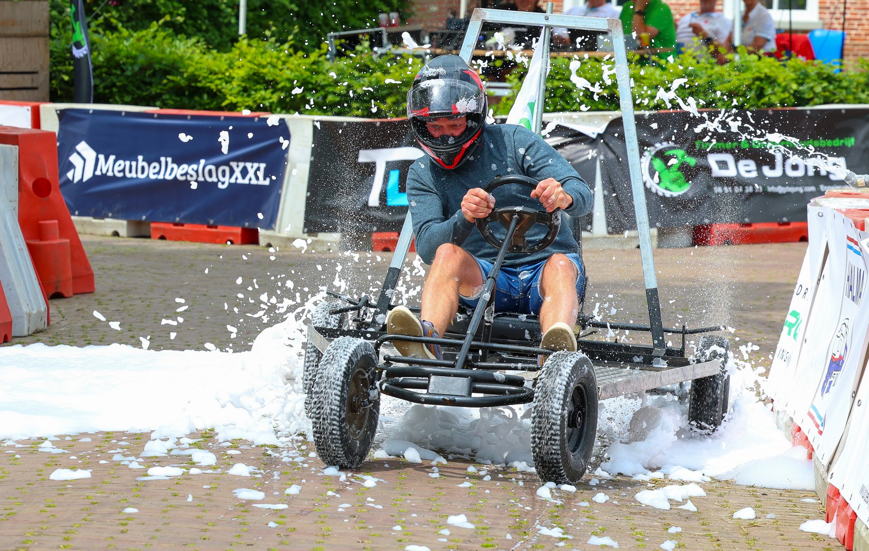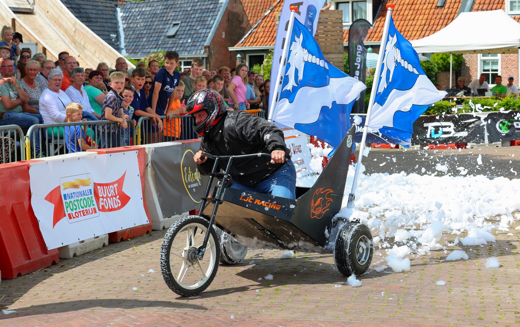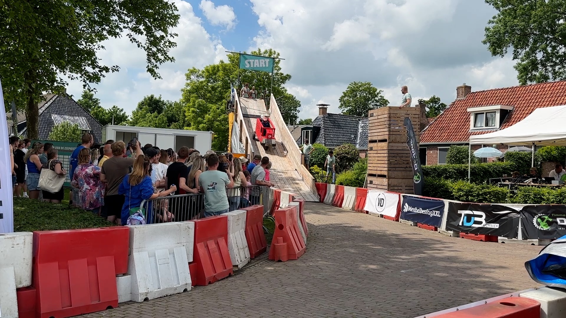 IE – De tweede editie van de zeepkistenrace in Ie was wederom een spektakel. Jorrit Meirink en Oeds van der Meer deden vorig jaar mee en stonden te popelen om dit jaar weer te racen. “Dat wie sa’n sukses, dat dogge wy it hiele jier gelyk wer,” vertelt Jorrit.