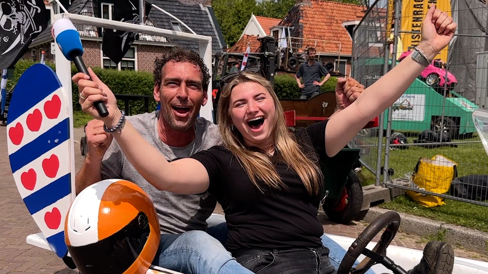 Anderhalve maand verder, 31 mei, tijd voor de zeepkistenrace 2025 in Ie. De zeepkist van Jorrit en Oeds is intussen af, maar houdt het niet lang vol. Tijdens de vrije training was het gewicht te zwaar en ging er iets stuk, nu moet Oeds vervangen worden door de dochter van Jorrit: Wytske. “Ik bin benijd, ik moat ek noch stjoere, dus ik hoopje dat it goedkomt,” aldus Wytske.