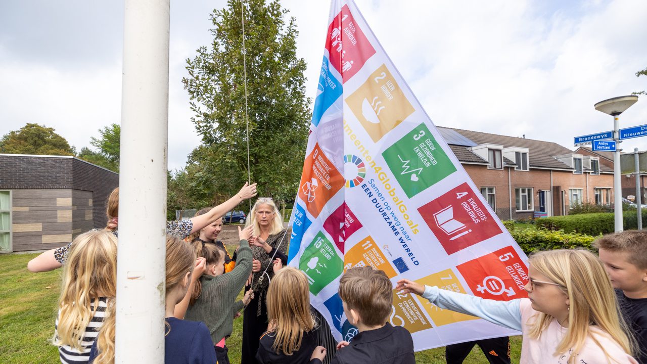 Scholen in Achtkarspelen hijsen Global Goalsvlag