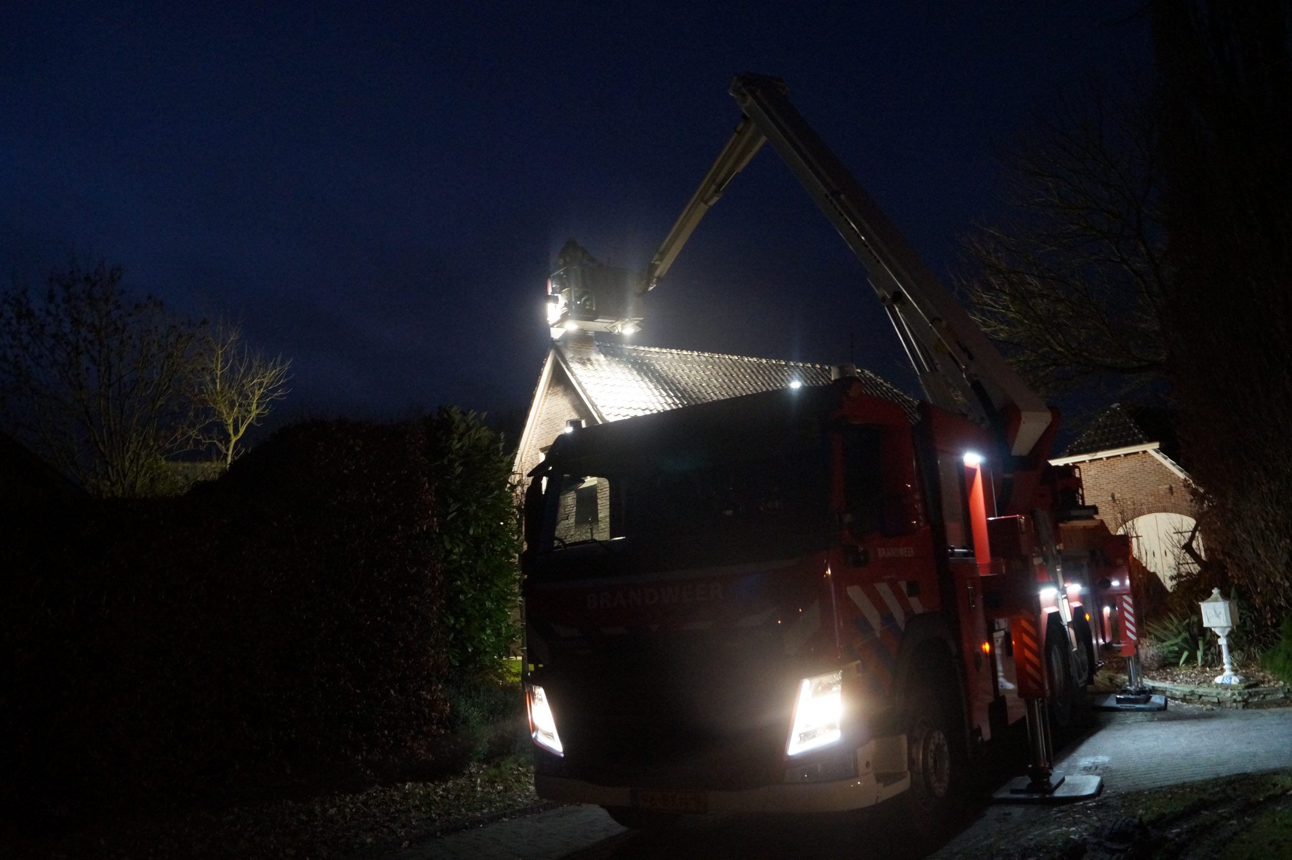 Ook de hoogwerker van de brandweer uit Leeuwarden kwam ter plaatse en deze heeft met behulp van een ramoneur het rookkanaal schoon gemaakt. De brand was daardoor snel onder controle.