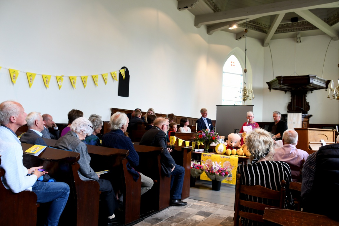Vrijdagmiddag 17 mei is in de Petruskerk in Twijzel de Simke Kloostermanprijs uitgereikt aan de schrijfsters en illustrator van het boek “Tomkes foarlêsfeest”. Er was een welkomstwoord door Oebele Brouwer, voorzitter van het Simke Kloostermanlien.