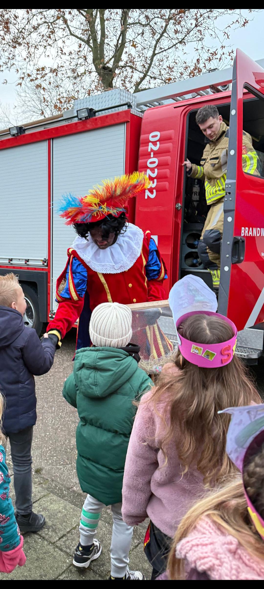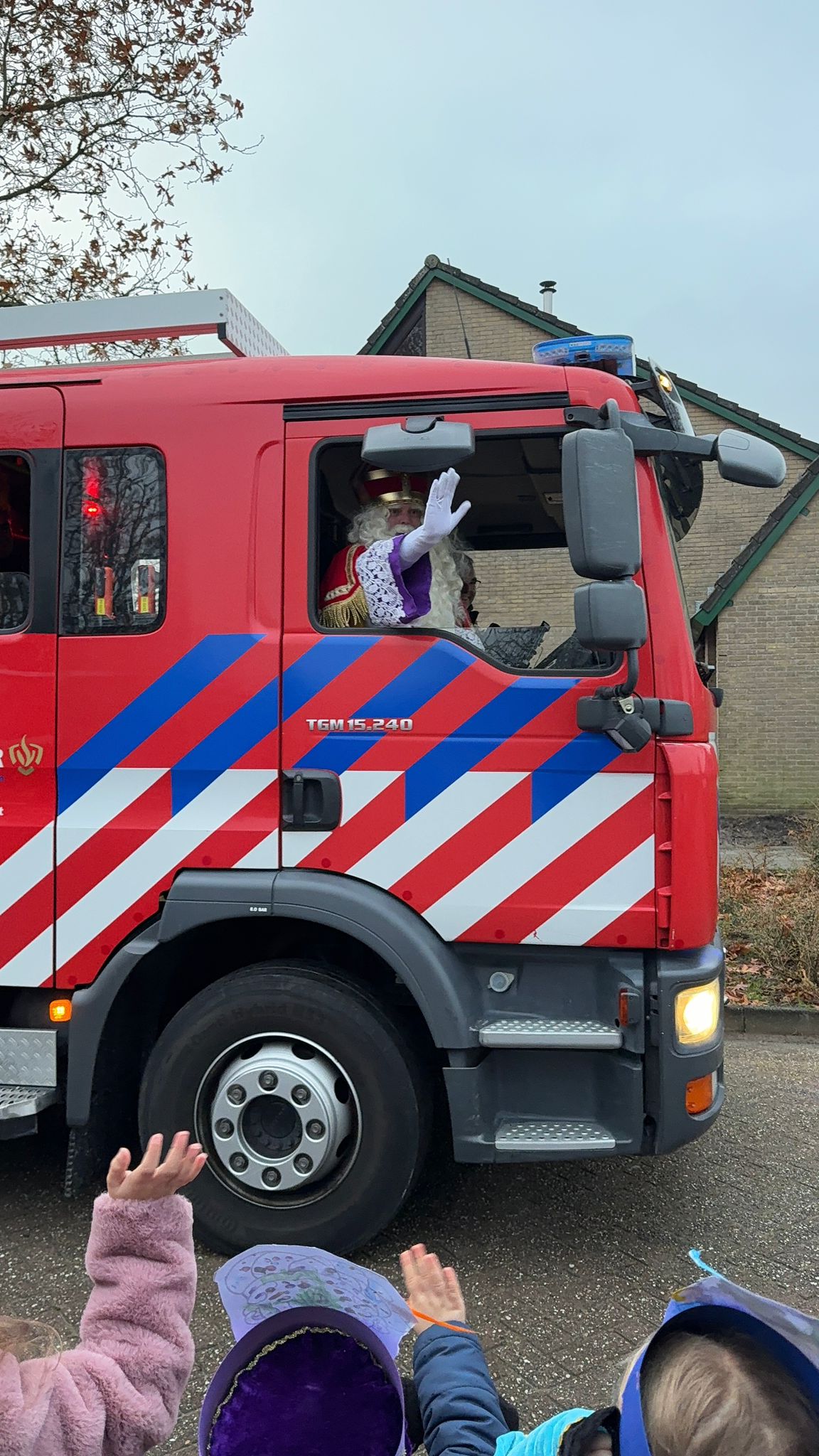 Hij belde sinterklaas…en sinterklaas heeft de brandweer gebeld. Gelukkig heeft de brandweer Piet uit de berm kunnen halen en Sint en Piet veilig naar school gebracht! Na een warm welkom werd het feest binnen voortgezet!