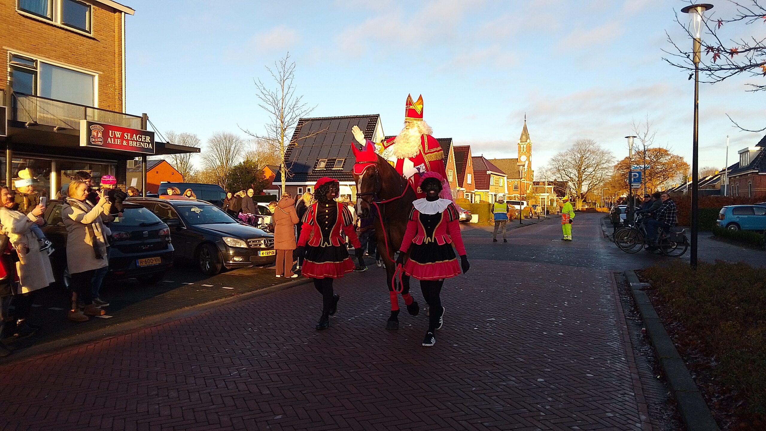 HARKEMA – Vrijdagmiddag rond 15.30 uur arriveerde Sinterklaas in Harkema, waar veel kinderen met hun ouders hem enthousiast opwachtten. Tot verrassing van velen kwam hij niet op zijn vertrouwde paard Ozosnel, maar op een vervanger: Caballero. Sinterklaas werd begeleid door maarliefst 42 Pieten.