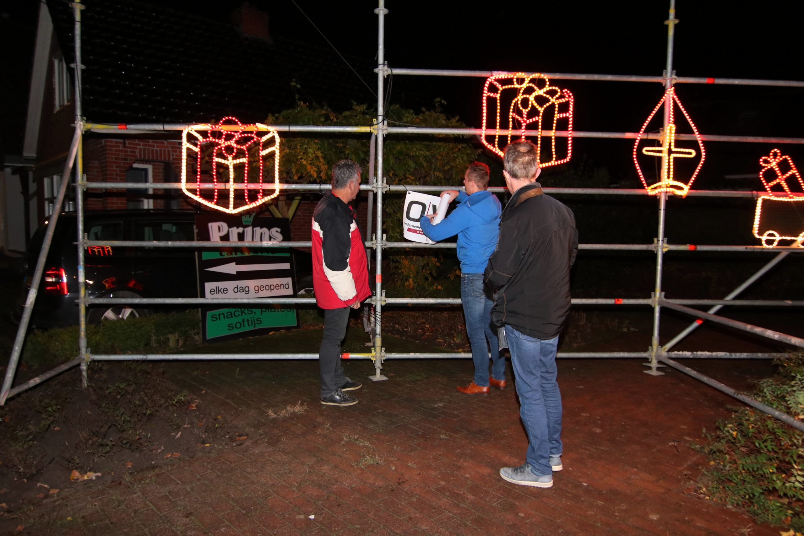 De drie voorzitters van Ondernemersvereniging Kollumerzwaag, Plaatselijk Belang Kollumersweach en Feankleaster en Oranjevereniging Kolumerzwaag onthulden een gezamenlijk spandoek met de logo’s van hun samenwerkende verenigingen. Samen willen ze er ook in deze tijd voor inwoners en bedrijven in de beide dorpen zijn. Juist ook in donkere tijden kijken de drie verenigingen met betrokken vrijwilligers positief naar de toekomst. De vraag vanuit de organisatie “Intocht Sinterklaas/Veenklooster” om in dit speciale jaar mee te doen aan de actie “hart onder de riem” sluit hier goed op aan.