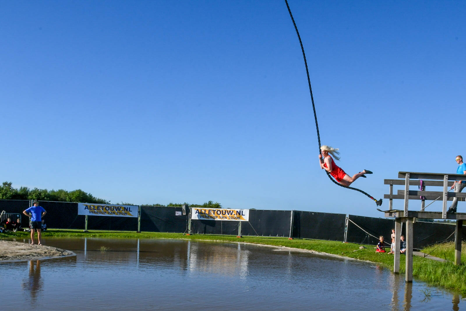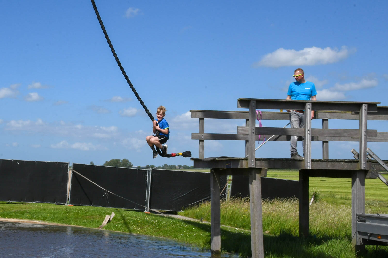 Er was grote belangstelling voor deze wedstrijd. Een kleine 40 kinderen hadden zich opgegeven om hier aan mee te doen. Voor sommigen was het wel spannend om de gok te wagen om het touw vast te grijpen en over de vijver te springen. De winnaars waren: