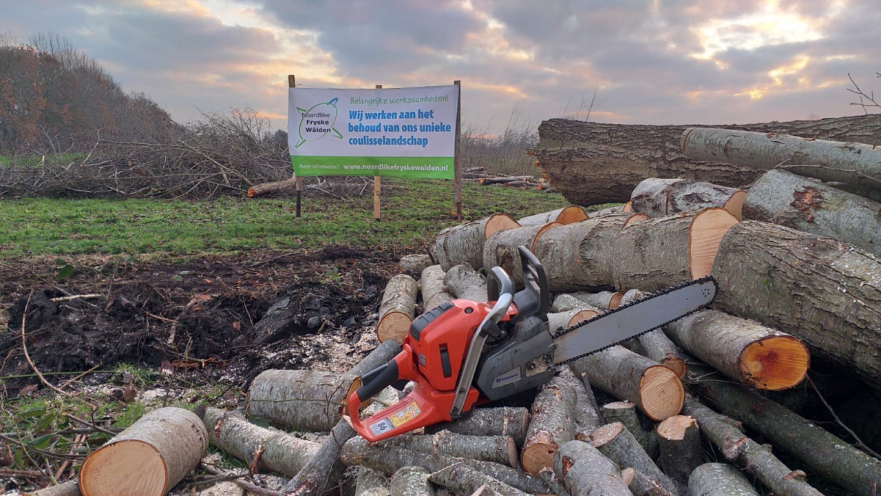 Omwonenden en voorbijgangers schrikken soms als ze zien dat er zoveel bomen tegelijk worden gekapt. Dit gebeurt tijdens de zogenaamde eindkap. Men denkt dan dat het om illegale werkzaamheden gaat en bellen dan de gemeente of het bureau van de Noardlike Fryske Wâlden. Om aan te geven dat leden van de vereniging deze werkzaamheden juist uitvoeren om het coulisselandschap in stand te houden, heeft de verenging Noardlike Fryske Wâlden een spandoek gemaakt waarmee het publiek hierover wordt geïnformeerd.