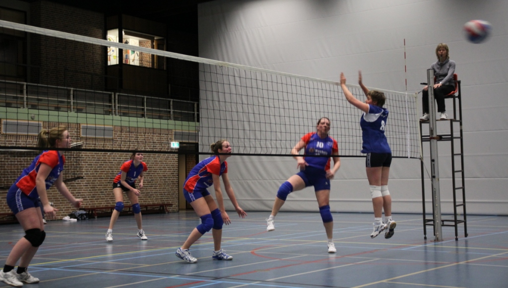 Na een time-out, aangevraagd door de aanvoerster haalden de dames de achterstand goed in. Dit deden ze door strakke tactische ballen waardoor de tegenstanders harder moesten werken om er een aanval uit te krijgen. Toen de 20 punten waren bereikt gingen de teams gelijk op tot een 27-27. De tegenstanders scoorden twee punten achter elkaar waardoor ze er met de eerste setwinst vandoor gingen. (27-29)