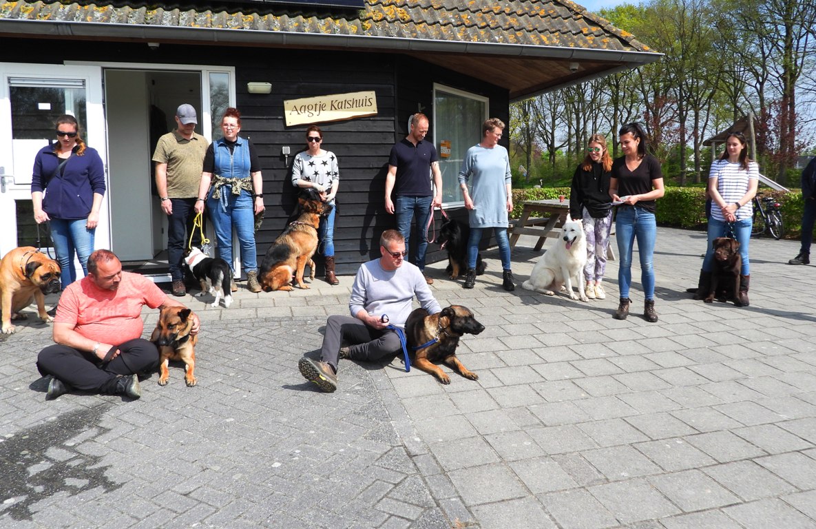 Het was voor Lutske dus niet meer dan logisch om een reünie te organiseren om op deze manier voldoende geld voor een vijverpomp te kunnen inzamelen. Ze stelde dit voor en heeft direct een evenement aangemaakt op sociaal media. Er was veel interesse en uiteindelijk lukte het om twee groepen in te plannen. Een om 9.15 met 8 deelnemers en 10.30 met 9 deelnemers. “Alle baasjes en honden die meeliepen hebben eerder bij mij of Lies getraind en sommige waren zelfs nog midden in het traject. Bij ons zijn alle ras types welkom en zo konden wij twee verschillende groepen maken waarbij rekening wordt gehouden met gedrag, temperament en conditie”. Het was prachtig mooi weer en het was een zeer geslaagde ochtend. “De baasjes en honden hebben het allemaal fantastisch gedaan, ieder op zijn eigen niveau! Wij kijken terug op een zeer geslaagde ochtend waarbij we maar liefst € 340,- euro hebben opgehaald voor een nieuwe vijverpomp”.