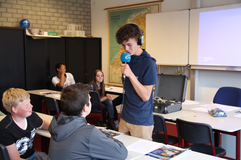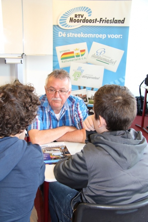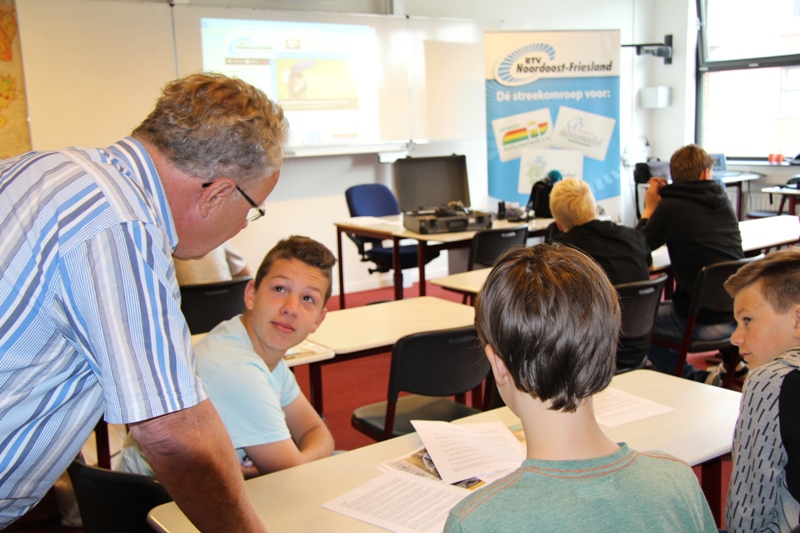 Oud onderwijzer Anton van der Meer, al jarenlang vrijwilliger bij de sportafdeling van RTV NOF, pakte zijn oud beroep tijdens de workshop weer heel gemakkelijk op en gaf helder en duidelijk uitleg waar je zoal op moet letten en werd daarin bijgestaan door Lammert Brouwer. De bedoeling van de workshop was dat de leerlingen zelf aan de slag gingen om elkaar interviews af te nemen maar dat bleek voor sommigen nog te moeilijk.