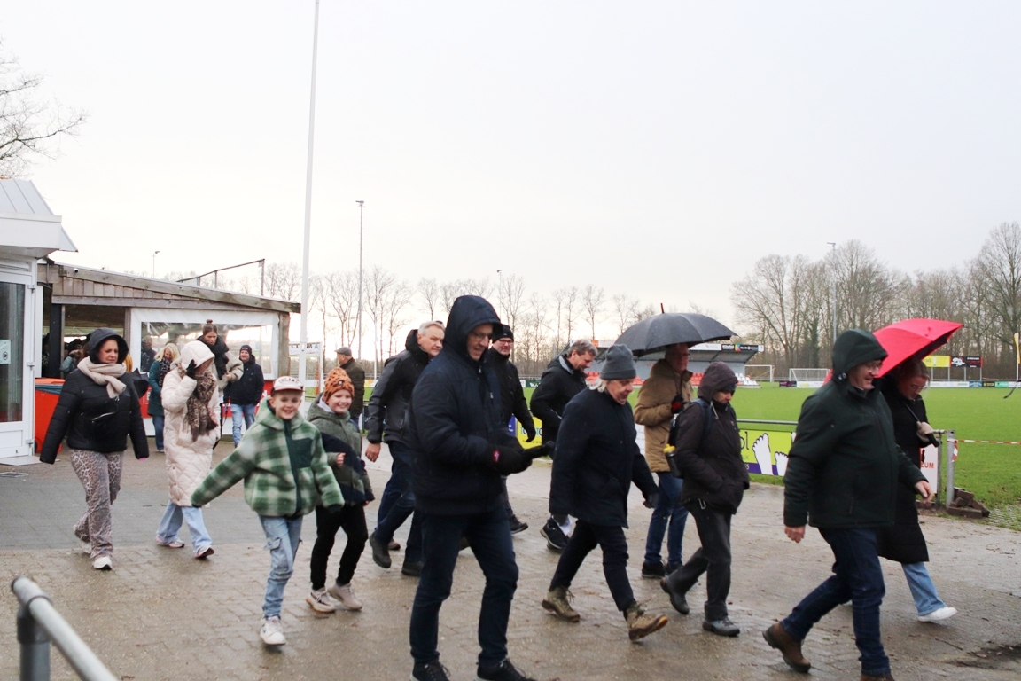 KOLLUM – VV Kollum is afgelopen zaterdag het sportjaar 2025 gestart met de traditionele Club van 100 wandeltocht en Nieuwjaarsloop. Het evenement werd goed bezocht door wandelaars, hardlopers en supporters. De wandeltocht van ruim zes kilometer ging door en rondom Kollum. Halverwege de tocht konden de wandelaars bij de koek en zopie terecht voor warme chocomel of thee met koek. Tachtig wandelaars waren van de partij, een prachtige opkomst ondanks het feit dat er tijdens de start een regenbui boven Kollum hing.