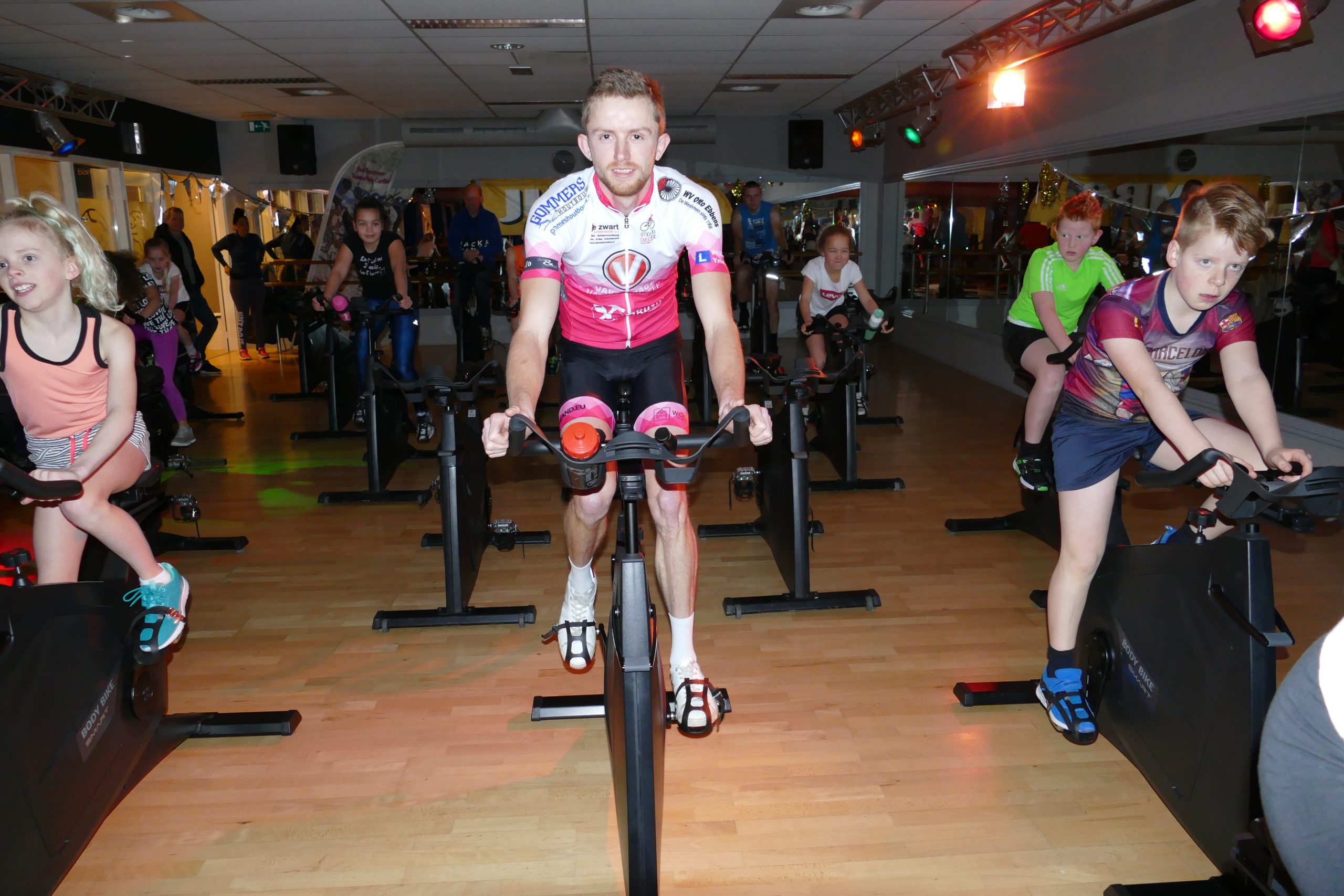 De groepslesorganisatie Les Mills, waar Sportstudio Dokkum bij aangesloten is, stelde voor dit evenement 35 fietsen kosteloos ter beschikking. Met de eigen eigen fietsen erbij waren er daardoor 50 fietsen beschikbaar voor de marathon!