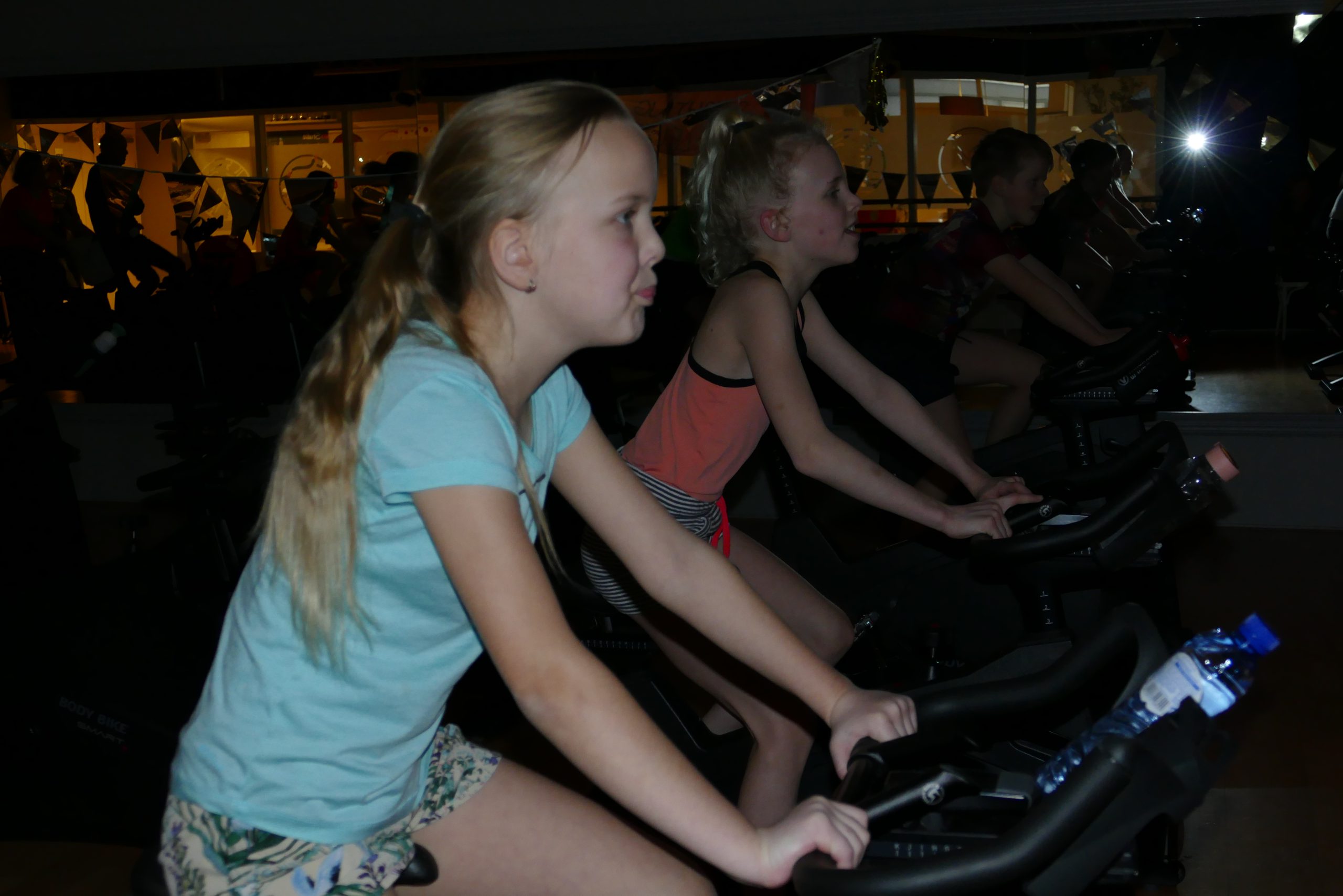 ’s Morgens om tien uur was de aftrap van de marathon voor onze jeugdleden (de kidsfitnessers en de dansers). Zij fietsten anderhalf uur onder leiding van Lotte, Joyce, Simara, Merel en Cindy. Ze hadden hiervoor allemaal van te voren een sponsorkaart gekregen met de bedoeling deze zo vol mogelijk te krijgen.