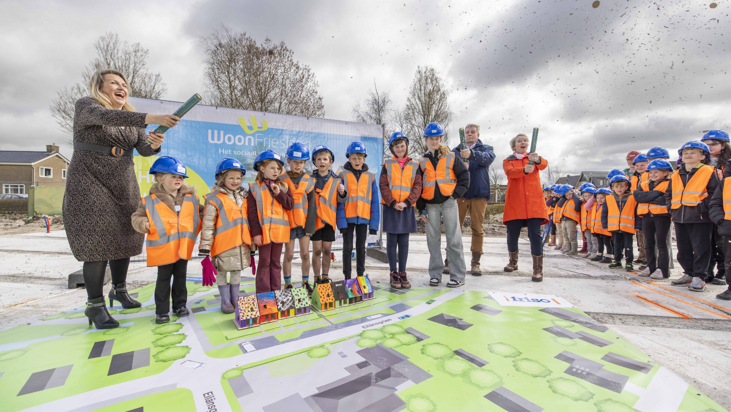 EARNEWALD – In Earnewâld is woensdag 26 maart gestart met de bouw van acht sociale huurwoningen aan de Eilânsgrien. Dit project maakt deel uit van een groter plan van WoonFriesland en Friso Bouwgroep om versneld tweehonderd sociale huurwoningen te realiseren in Fryslân.