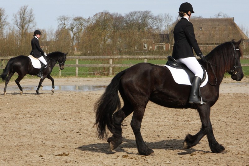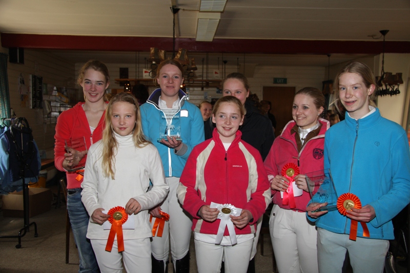 Daarna was het de beurt aan de wedstrijdamazones. Daar was het Jeanet de Bruin met Missy die een nette b proef liet zien en die de 1e prijs in ontvangst mocht nemen ,zij reden maar liefst 191 pnt bijelkaar. De 2e prijs was voor Mirjam Lyklema met de stoere friese hengst Tjerk zij kregen 185 pnt van de jury. Daarna was het de beurt van Annemieke Wybenga met Teatske en Janke Thea veenstra met Teade die alle twee 183 pnt kregen en dus de 3e prijs in ontvangst mochten nemen. In de klasse L1 was het Harmina Holwerda met Ulrig PJ die 197 pnt bijelkaar reed en de 1e prijs mee naar huis nam.