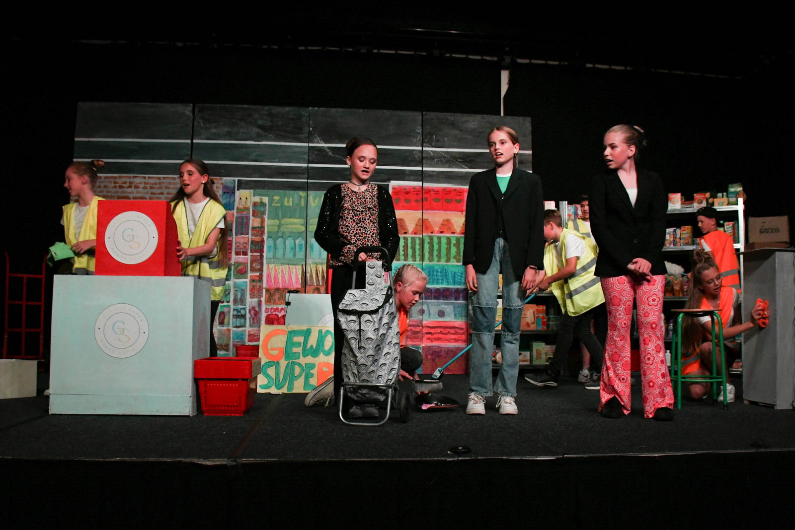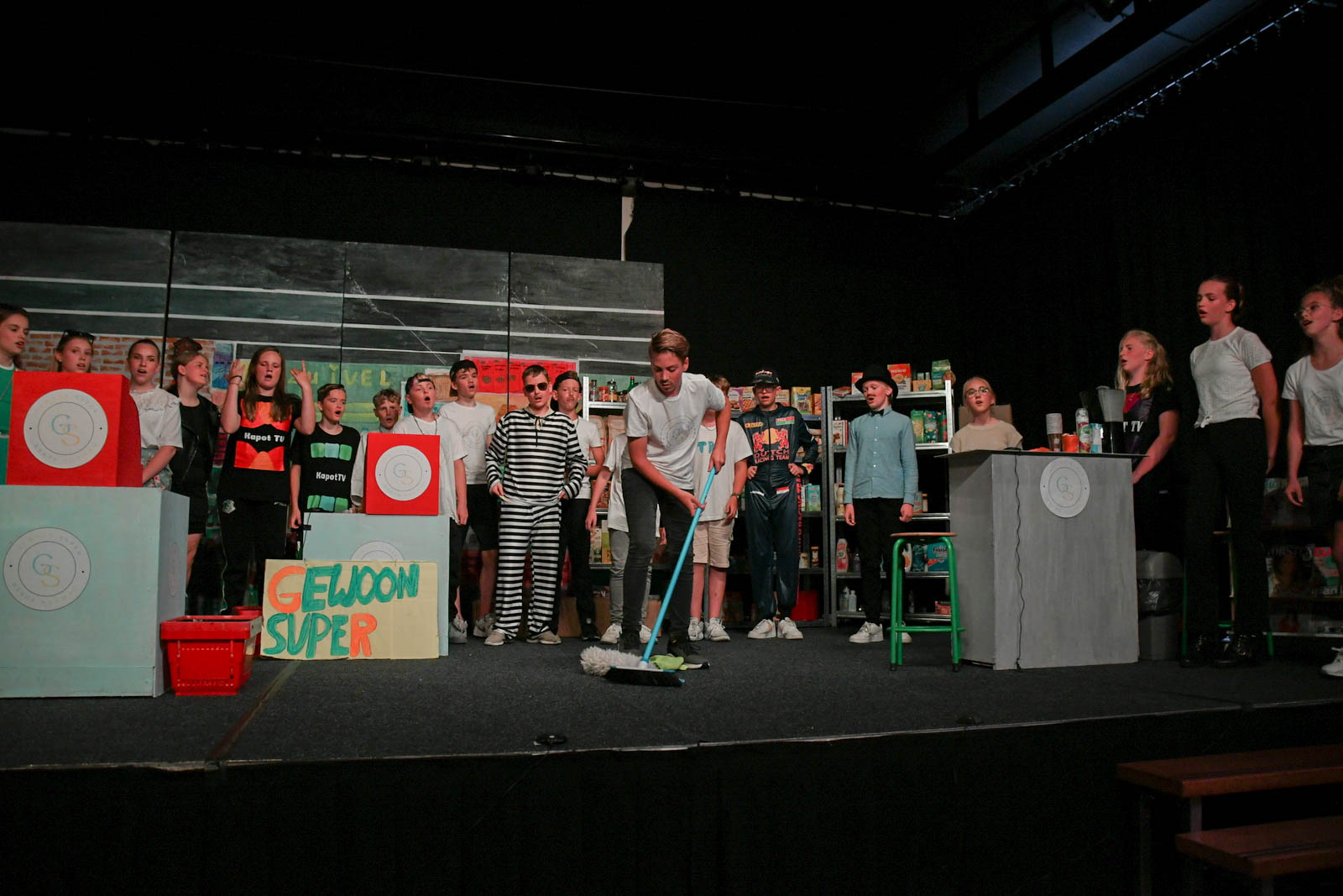 KOLLUMERSWEACH – Na maanden van oefenen was het zover. De leerlingen van groep 8 van CBS de Stapstien in Kollumersweach mochten de musical Gewoon Super opvoeren in De Trije Doarpen. ’s Middags werd de generale repetitie bijgewoond door de groepen 3 tot en met 7. ’s Avonds werden de deuren geopend voor familie en vrienden. Iedereen kon genieten van deze geweldige musical die zich afspeelt in een supermarkt.