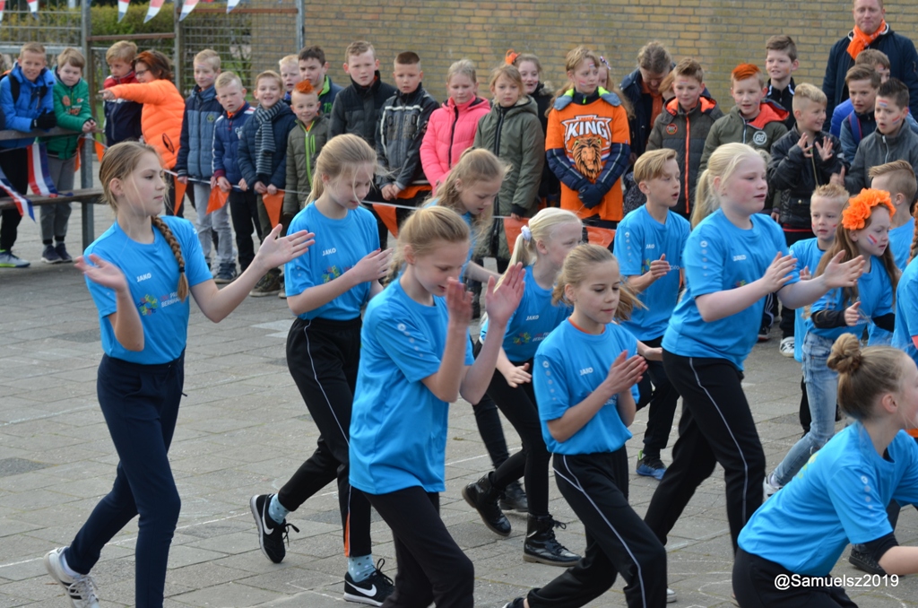De koningsspelen op de Prins Bernhardschool te Kollum werd enthousiast geopend met alle kinderen op het schoolplein. De PBkids hadden het lied ‘pasapas”, dat speciaal voor deze dag is gemaakt, ingestudeerd en samen met alle kinderen en ouders werd er feestelijk gedanst en meegezongen.