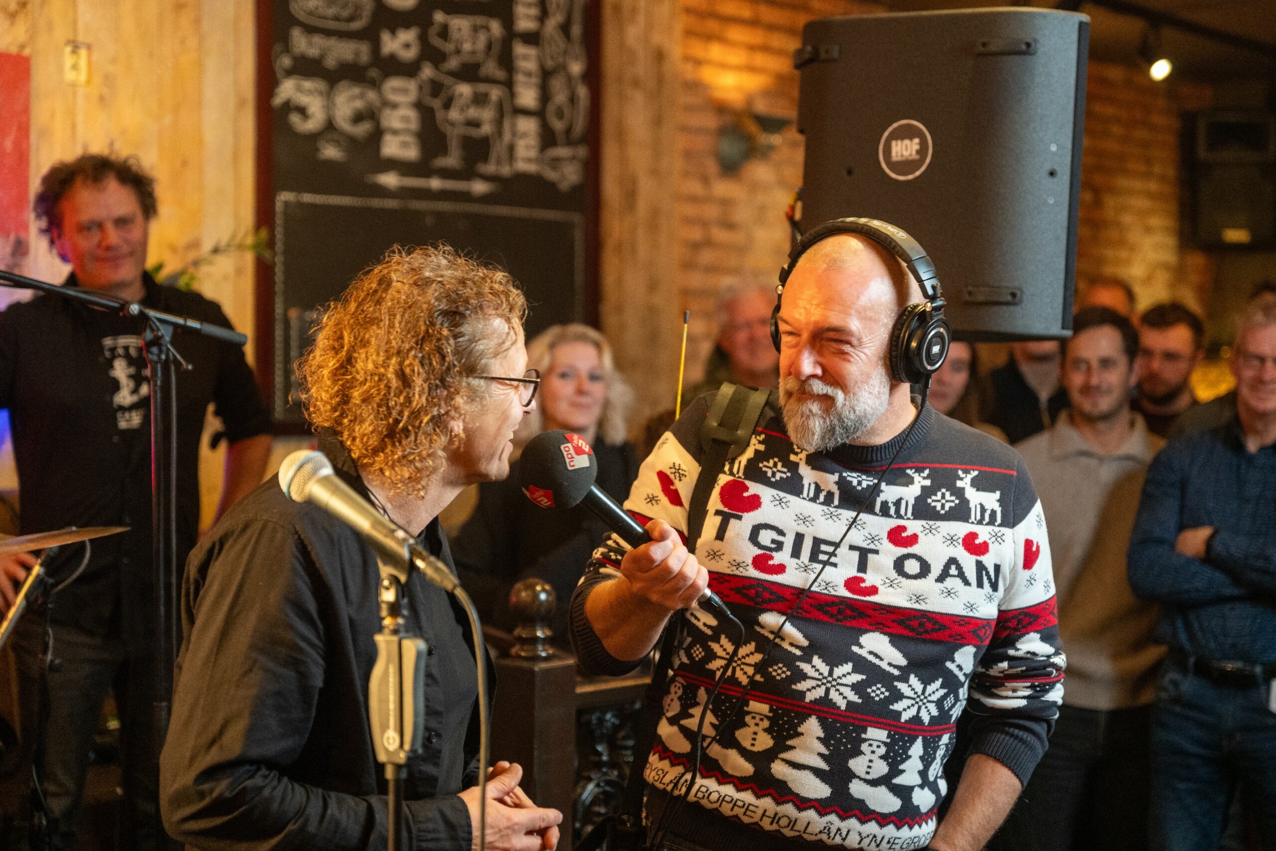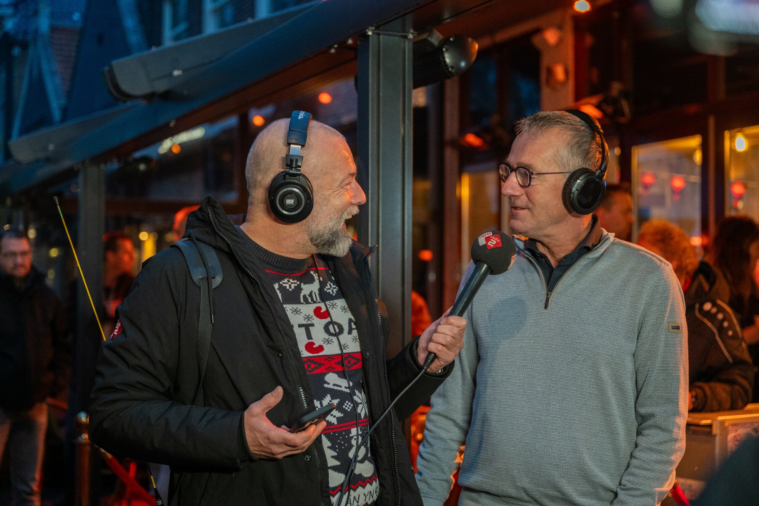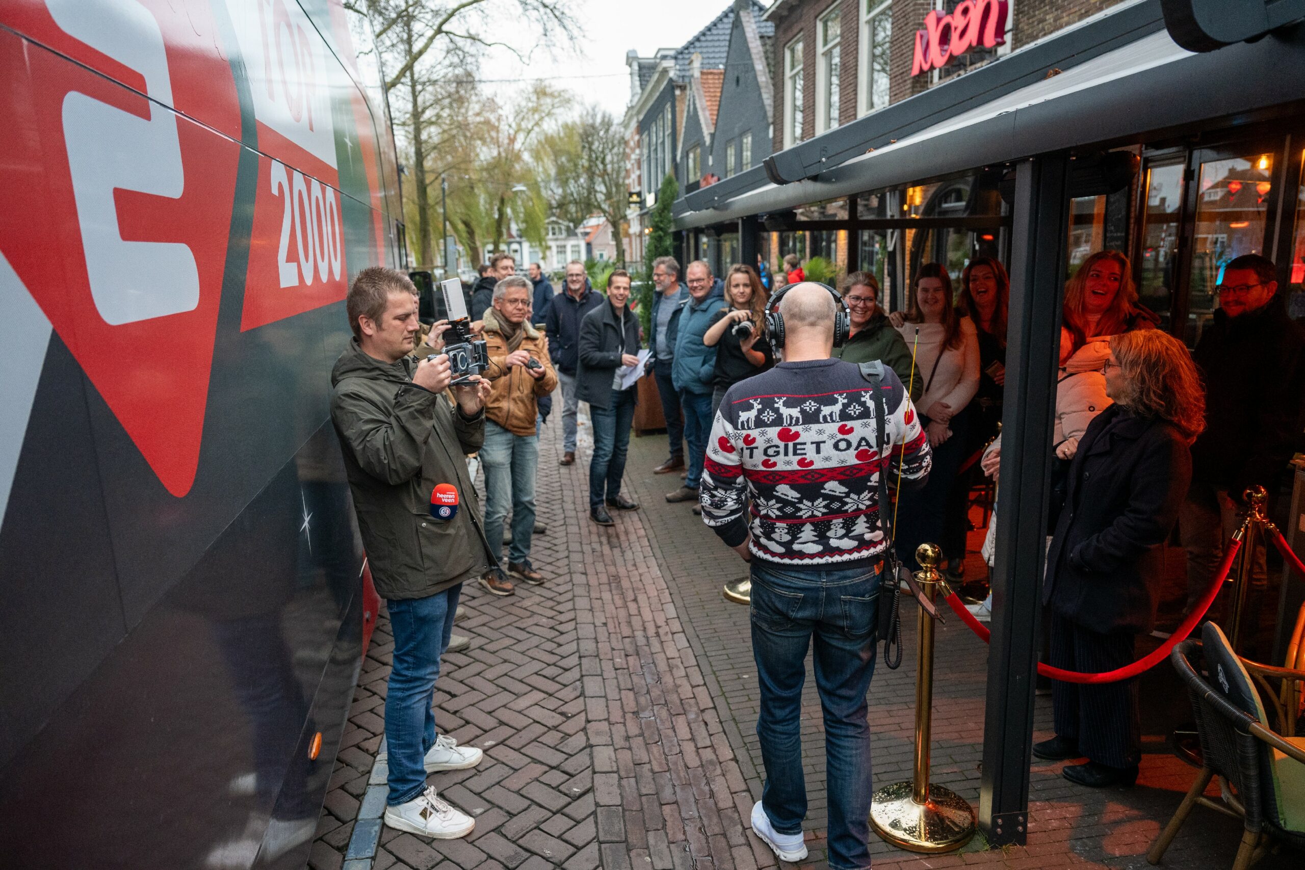 Even voor acht uur draaide de grote NPO-tourbus het smalle straatje voor het restaurant in. Onder luid applaus stapte radio-DJ Jeroen Kijk in de Vegte uit, die het laatste uur van zijn ochtendshow live vanaf de locatie verzorgde. “Wat een enthousiasme en wat fijn om hier te zijn,” vertelt hij.