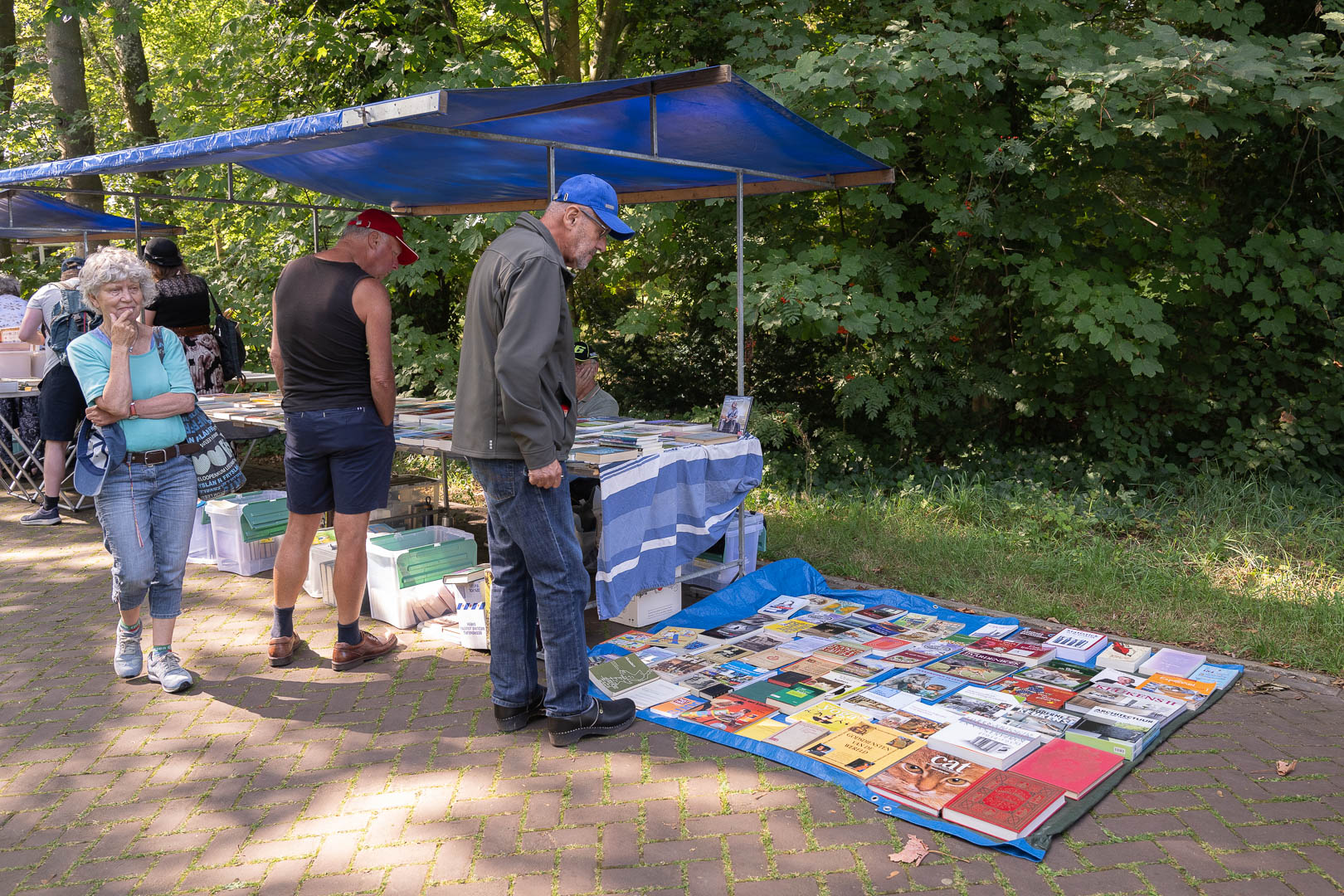 De boekenmarkt, die van 10.00 tot 17.00 uur duurde, trok veel geïnteresseerden. Van oude tot nieuwe boeken, er was voor ieder wat wils. Bezoekers snuffelden tussen de kramen, op zoek naar bijzondere vondsten en collectors items. Een van de hoogtepunten van de dag was de mogelijkheid om objecten te laten taxeren. Van 10.00 tot 15.00 uur konden bezoekers hun voorwerpen uit verschillende tijdsperiodes, variërend van de prehistorie tot de 20e eeuw, laten beoordelen door Lútzen Haak en archeoloog drs. Evert Kramer. De taxaties trokken een gemêleerd publiek; van mensen die hoopten op een waardevolle ontdekking tot nieuwsgierigen die meer wilden weten over de geschiedenis van hun objecten.