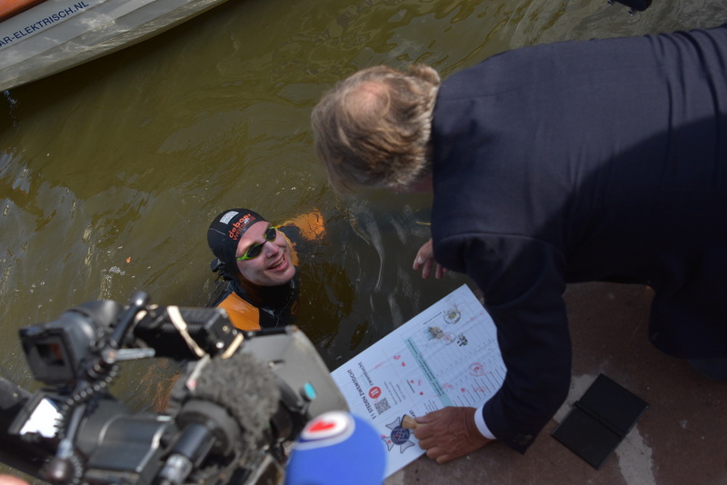 Ook deze keer was familie van de zwemmer bij het stempelmoment aanwezig. Hij kreeg zijn tiende stempel van burgemeester Apotheker. Die gaf hem vorig jaar nog als burgemeester van Franeker, naar achteraf deed blijken, de laatste stempel. “Dit jaar is het niet je laatste Maarten.” aldus Apotheker.