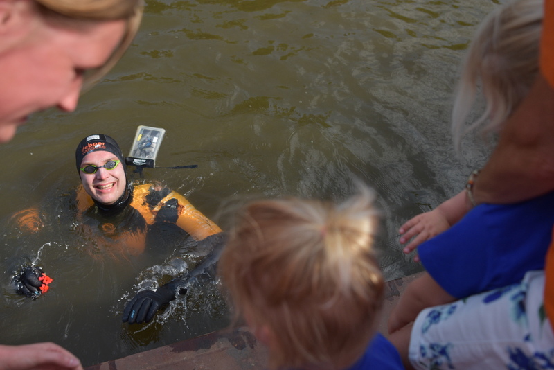 Even na half tien maandagochtend zwom Maarten van der Weijden Dokkum binnen. Het massaal toegestroomde publiek op de kade, dat vorig jaar nog vergeefs stond te wachten, kon hem onder luid gejuich en zingen dit jaar wel verwelkomen.