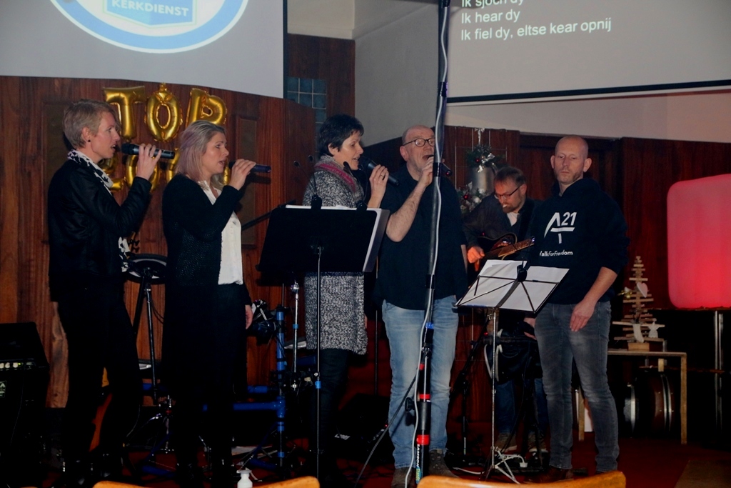Muziek is emotie! en brengt jong en oud daarom vaak dichter tot elkaar. Team en band van de Top 2000 die onder leiding staat van ds. Stander. Na de dienst zijn er voor iedereen heerlijke oliebollen en een warm drankje bij een knapperend houtvuur. Voor de organisatie was het een geslaagde avond met veel publiek.