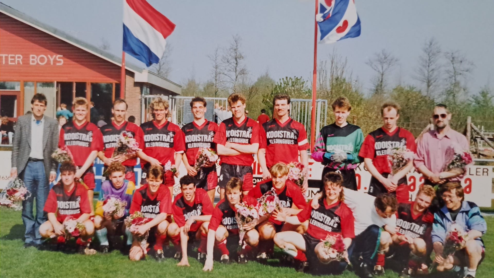 DAMWALD – In een tijdperk waarin sponsoring van sportclubs steeds meer vorm krijgt, is het niet direct een opzienbarend bericht dat er op 25 november 1978 in de Nieuwe Dockumer Courant verschijnt: “Kooistra Kledinghuis sponsort Broekster Boys”, schrijft het nieuwsblad. Hoewel Pier Sienema van Kledinghuis Kooistra in het bericht al voorzichtig uit de doeken doet dat hij grootse plannen heeft met de vereniging, zien dan nog weinigen aankomen dat Broekster Boys aan het begin staat van het roerigste en volgens velen mooiste hoofdstuk uit de clubhistorie.