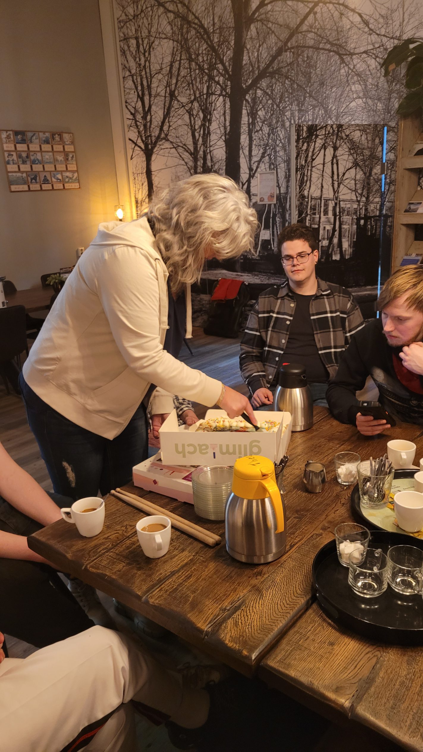 Een kleine twintig jaar geleden werd ze tambour-maître van de vereniging en geeft ze drumlessen. Tijdens de oefenavond van de drumband werd ze verrast met twee fototaarten met foto’s van vroeger en nu. Van de ‘Organisatie van Muziekverenigingen Fryslân’ kreeg ze een gouden jubileum-insigne aangeboden.
