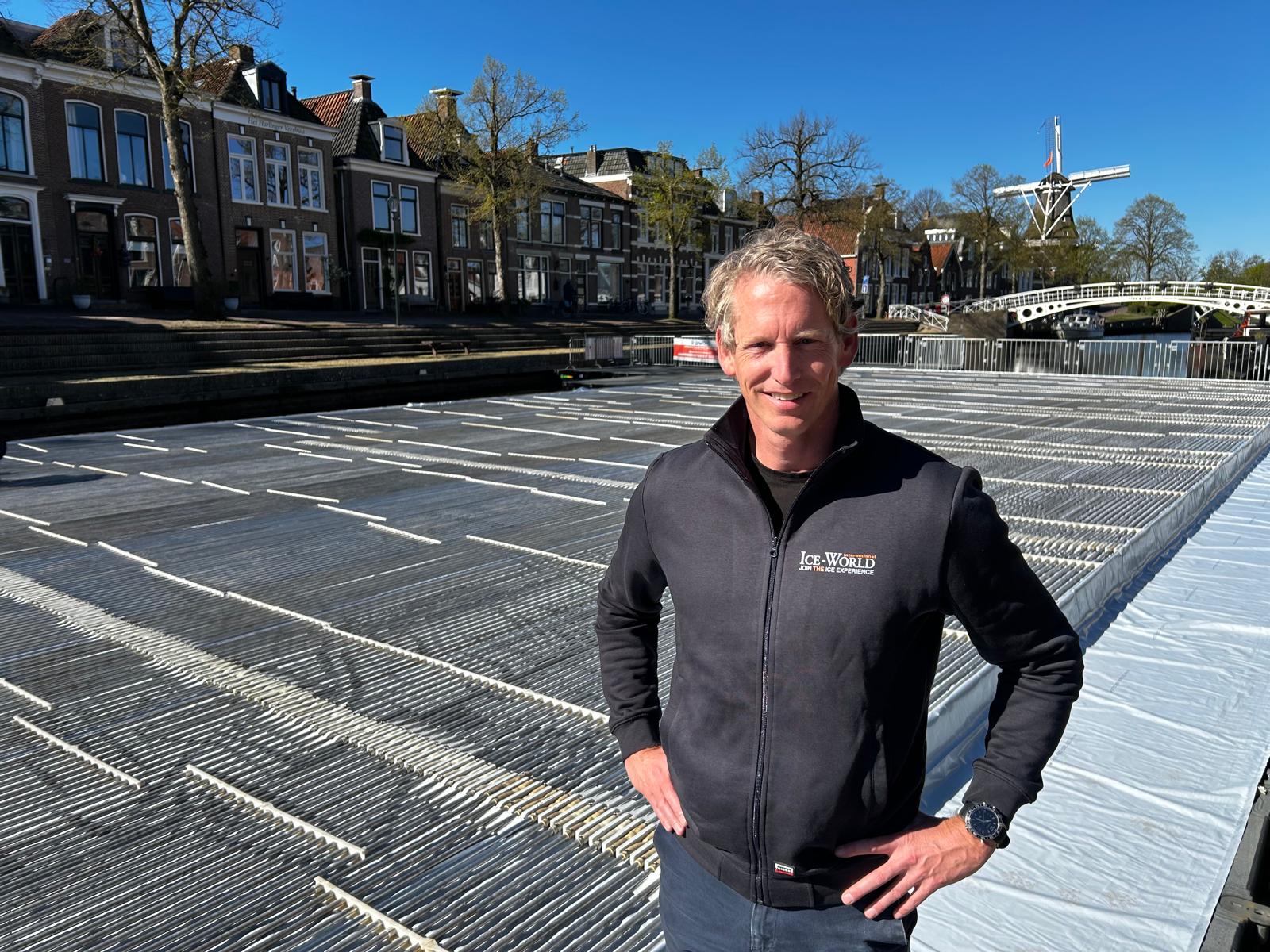 “Het is een uniek project”, zegt Wibe Bramer van Ice World, de organisatie die de vloer neerlegt. “De meeste ijsvloeren leggen we in december, nu in april moeten we de koelvloeistof wat dieper vriezen.”
