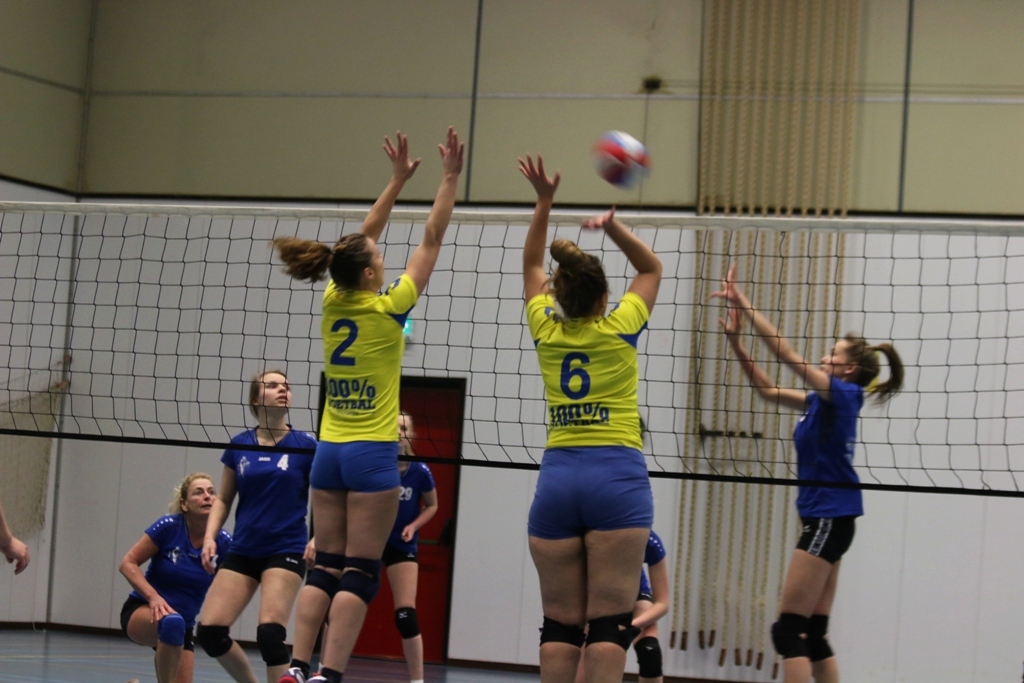 De wedstrijd werd door Dos direct sterk begonnen. Triumphera had geen antwoord op de stabiliteit en kwaliteit van Dos. De eerste set eindigde nog voordat de speelsters een hele ronde van posities hadden kunnen doordraaien. De eerste set was niet de enige set waarin dit gebeurde. De setstanden van de eerste drie sets zeggen genoeg: 7-25, 5-25, 8-25. De vierde set werden er nog wat posities gewisseld binnen het team van Dos. Ook werden de dames iets minder geconcentreerd. Deze vierde set wist Triumphera daardoor nog 15 punten te scoren.