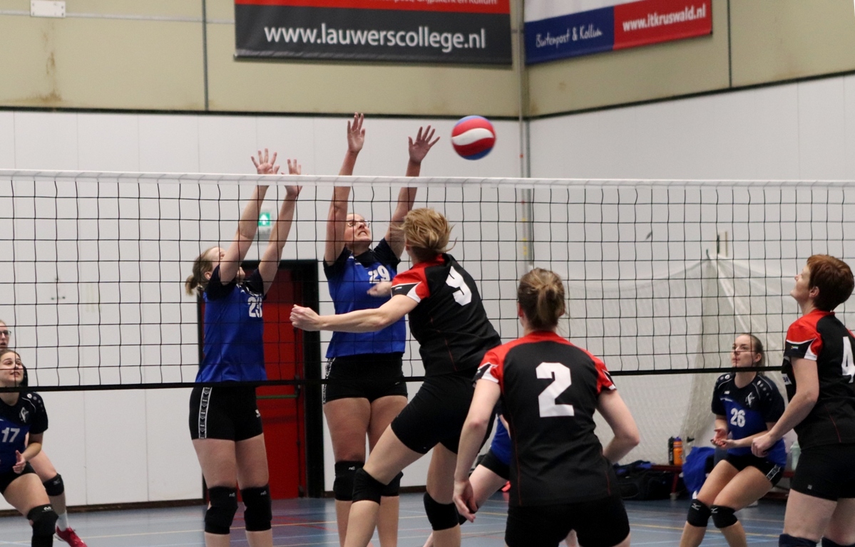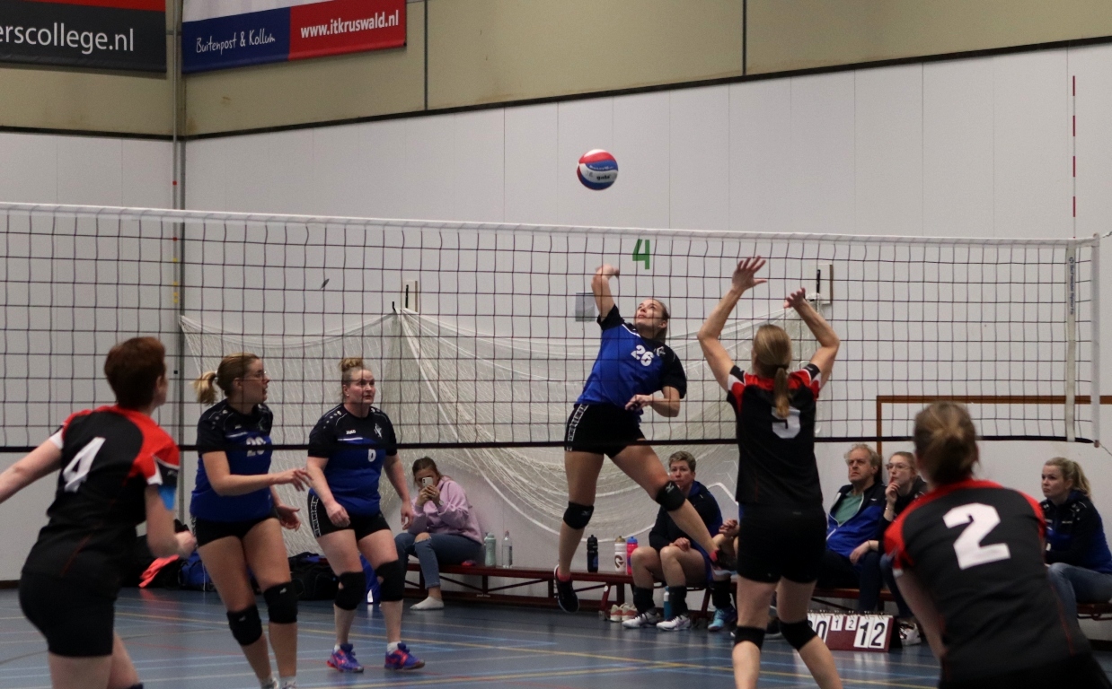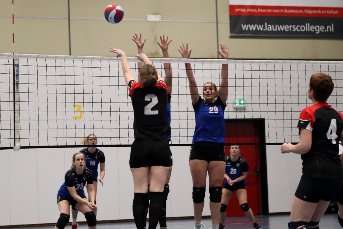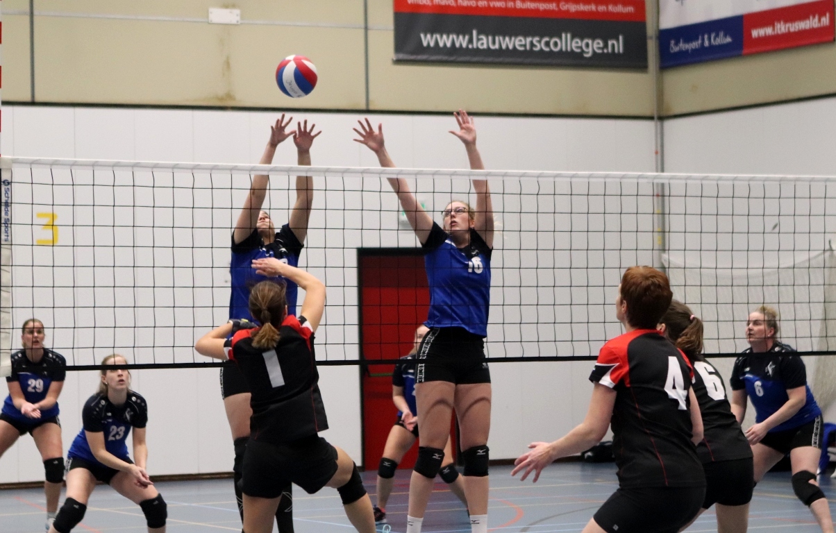 KOLLUM – Op donderdag 30 maart stond er een spannende wedstrijd op het programma van Triumphera dames 1. Triumphera dames 1 speelt deze wedstrijd tegen Vovesa dames 2 die 2e op de ranglijst staat. Triumphera dames 1 staat 3e op de ranglijst. Beide partijen strijden voor een 2e of 3e plekje op de ranglijst. De dames van Triumphera zijn gefocust. Tijdens het inspelen kun je aan ze merken dat ze vol vuur zitten en willen strijden voor de winst.