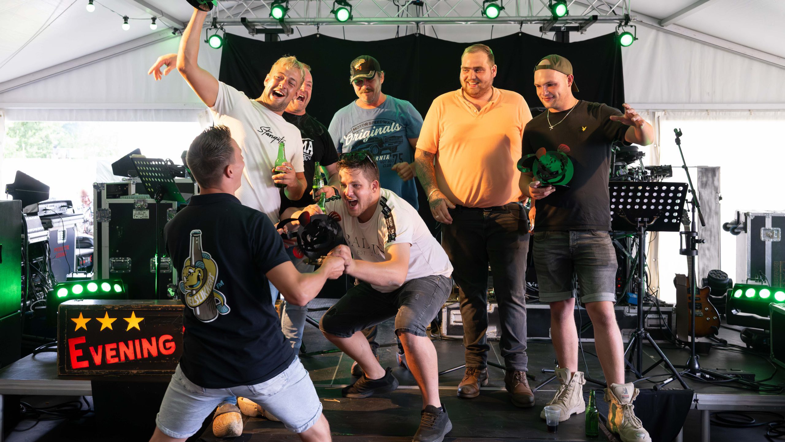 Na de prijsuitreiking werd de week dan echt afgesloten samen met het fundament van de Ielslikkers FM. Dit fundament zijn natuurlijk de sponsoren en vrijwilligers die ervoor zorgen dat de Ielslikkers met elkaar zo’n mooie week kunnen organiseren. En hoe passend is dat om te doen in de tent onder het genot van een hapje, een drankje en mogelijk nog een toastje met gerookte paling. Zonder de sponsoren en vrijwilligers geen week feest. Ditzelfde geldt voor alle bezoekers – groot en klein, deelnemers, de catering, luisteraars, muziekspel-liefhebbers en iedereen die (nog) niet genoemd is.