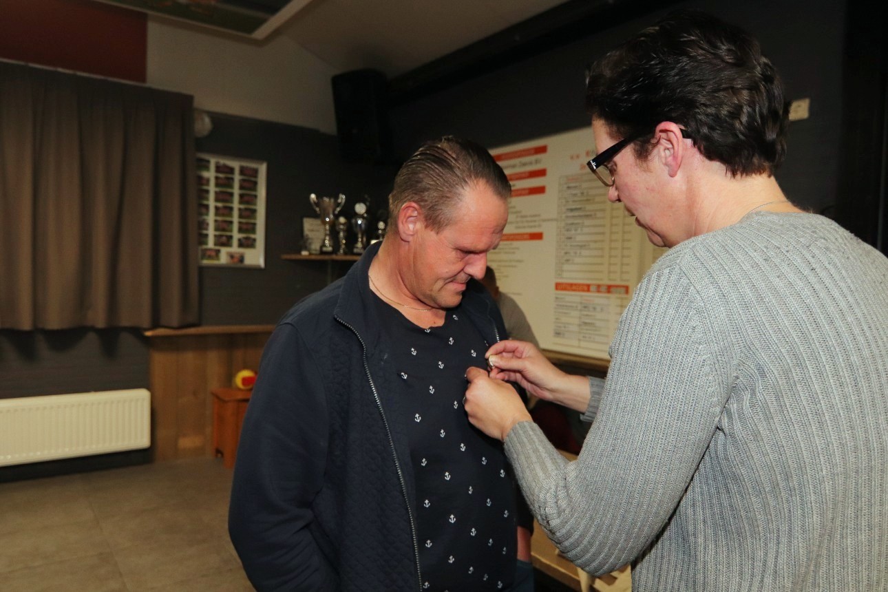 Vrijwel alle nu spelende senioren hebben Auke als trainer gehad, waarmee je kunt zeggen dat hij aan de basis heeft gestaan van de sportieve successen van de vereniging in de afgelopen jaren.Bij het beëindigen van zijn activiteiten heeft de vereniging hem op deze manier de waardering gegeven, die hij heeft verdiend. Het bijbehorende verenigingsspeldje is hem door zijn partner opgespeld in verband met de corona-regels.