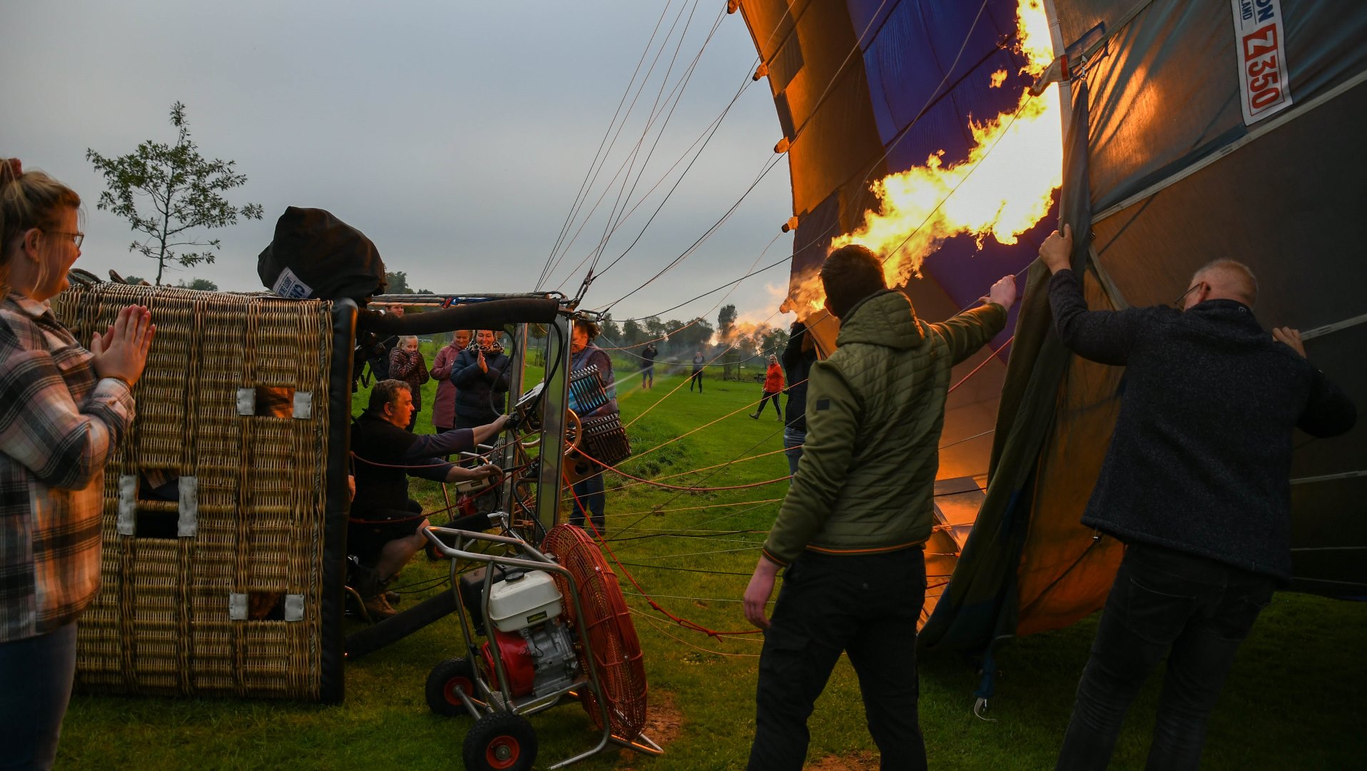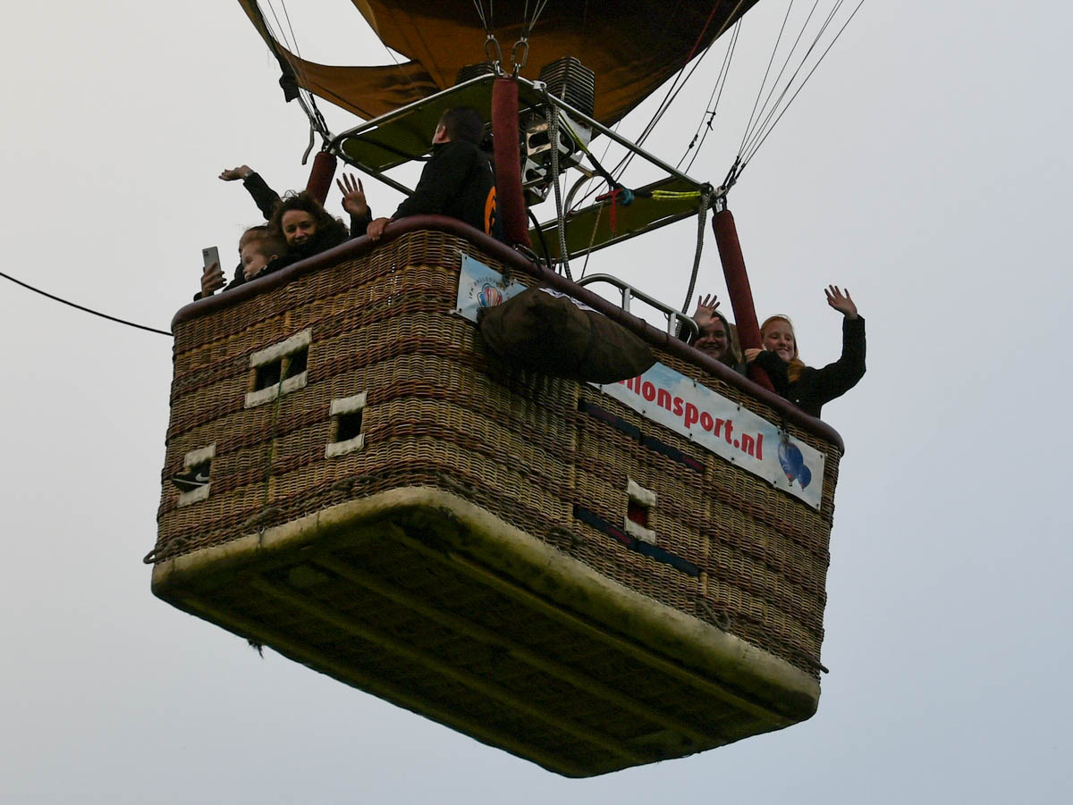Het idee is spontaan ontstaan bij één van de deelneemsters en via de sociale media bekend gemaakt. Zo kwamen er steeds meer bij. De ene ballon had acht passagiers aan boord en de andere veertien.