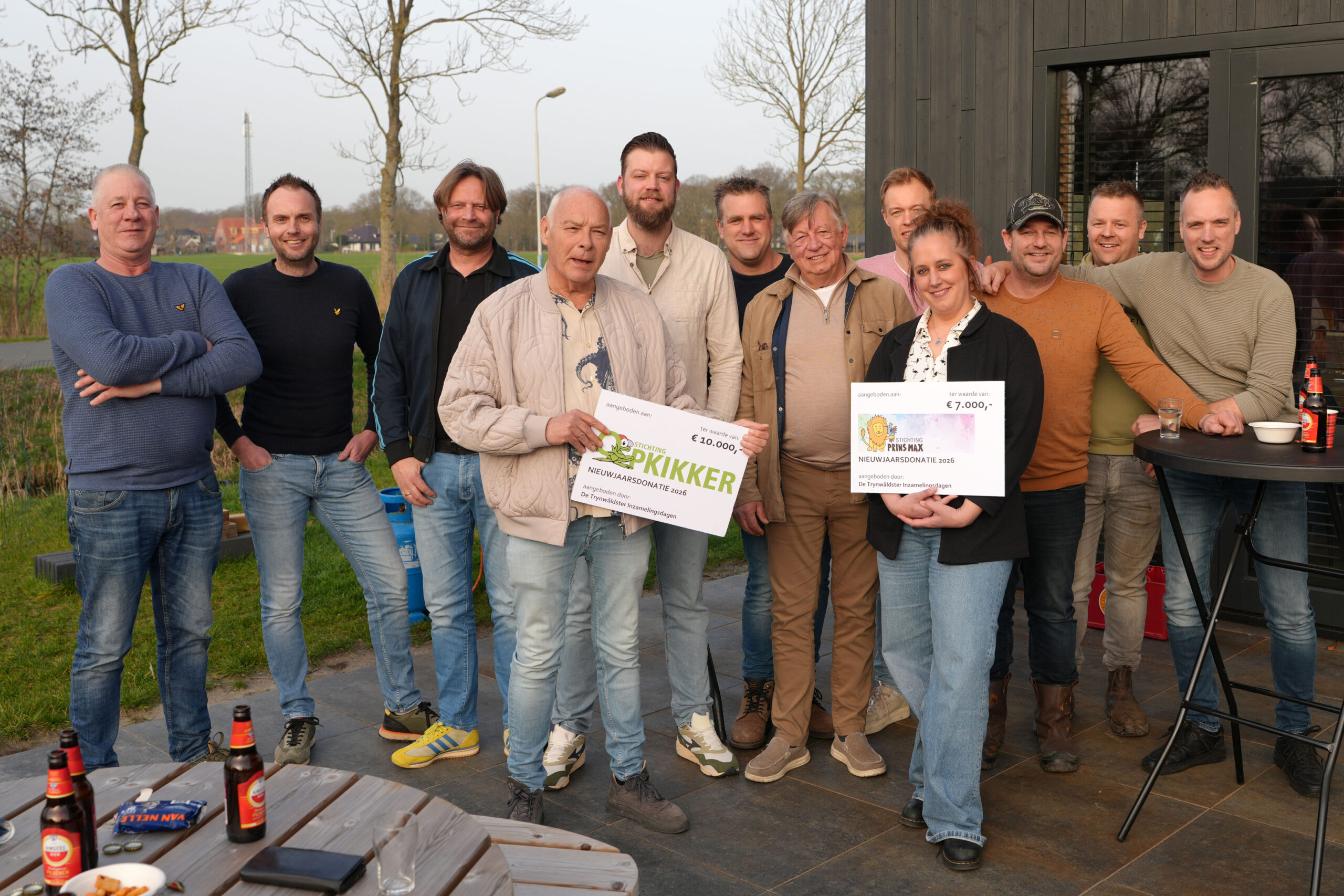 OENTSJERK – Onder het genot van een drankje en een hapje werden op bedrijventerrein Sanjesreed twee cheques uitgereikt. De opbrengst kwam van de inzamelingsdagen in de Trynwâlden. Door de verkoop van vis, kerstbomen en oliebollen en een grote radiobingo werd met hulp van veel vrijwilligers een mooi bedrag opgehaald.