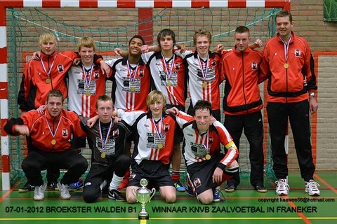 De B1 junioren van de Broekster-Wâlden heeft voor de 2e maal op rij het grote kerstzaalvoetbaltoernooi van de KNVB van het noorden in Franeker gewonnen! Via voorrondes in de provincies Drenthe, Groningen en Friesland heeft het team zich geplaatst voor de finaleronde op zaterdag 7januari.