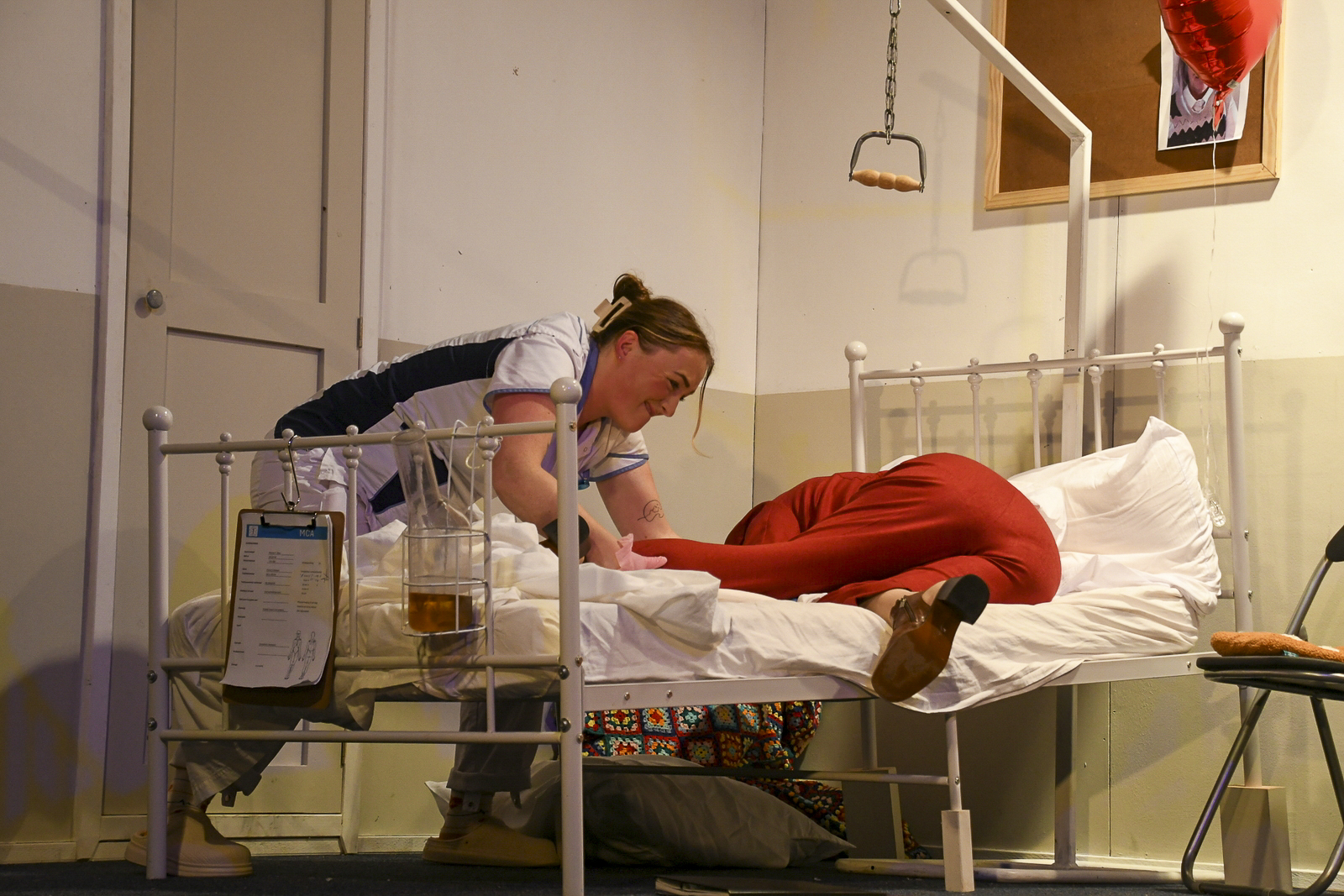 Afgelopen vrijdag en zaterdag brachten ze het stuk ‘Diagnoaze: net mear te rêden’ voor het eerst op de planken en dat was een groot sukses! Het stuk speelt zich af in het ziekenhuis. Het publiek zag de strenge hoofdzuster De Vries. Ze was heel zenuwachtig, want de Inspectie van de Gezondheidsdienst zou langskomen. Zou alles wel op orde zijn, is het wel goed schoon, werken ze wel volgend de voorschriften enz. Verder maakte het publiek kennis met een aantal “núveraardige” patiënten, die op de zaal liggen.