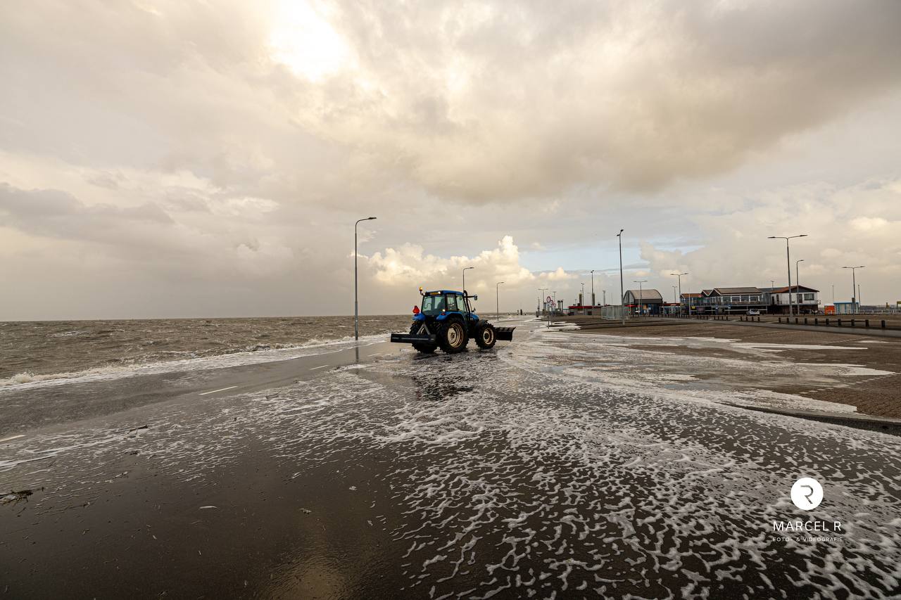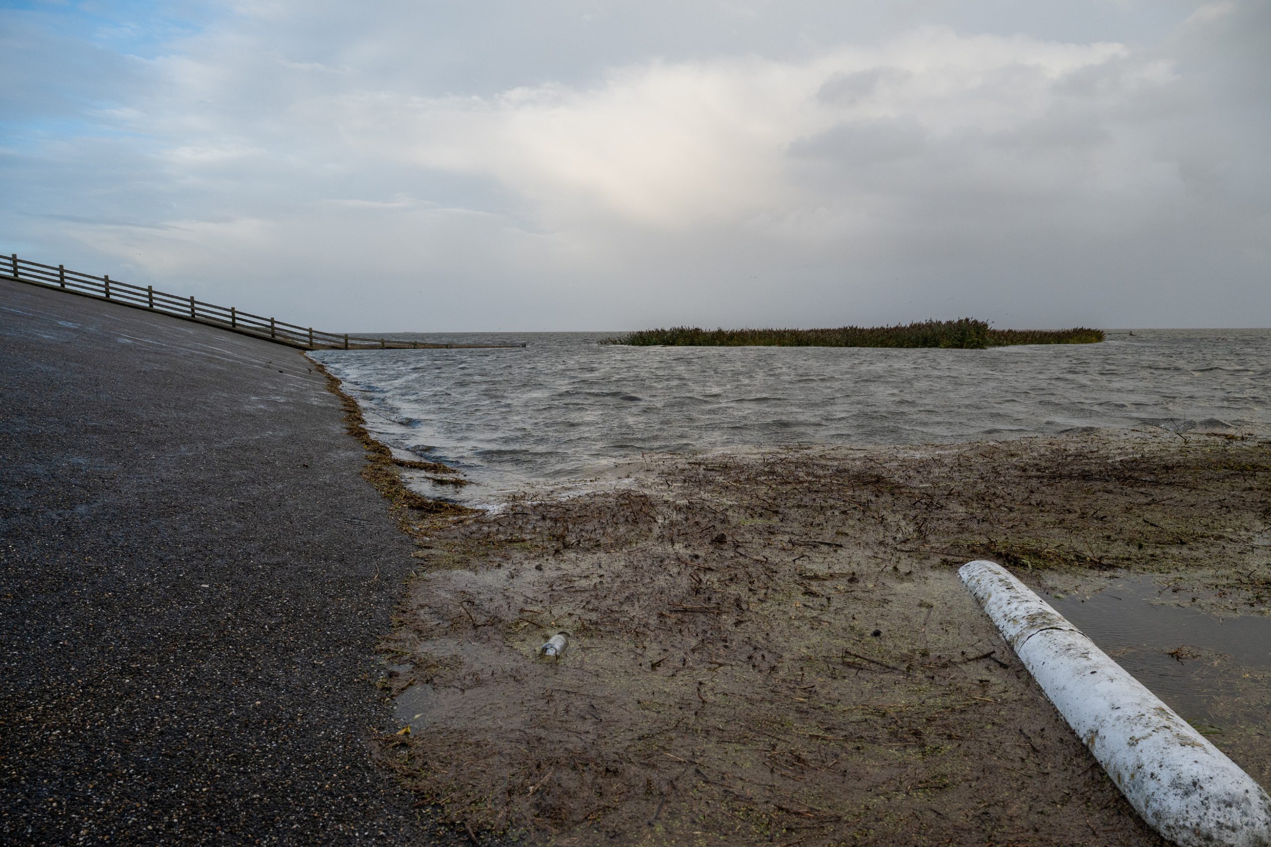 Vrijdag en zaterdag zijn auto’s die nog bij de pier stonden weggehaald om schade te voorkomen. Voor dieren in het gebied is de situatie moeilijk. Bij de pier zijn veel muizen verdronken en hazen zoeken haastig een droge plek.