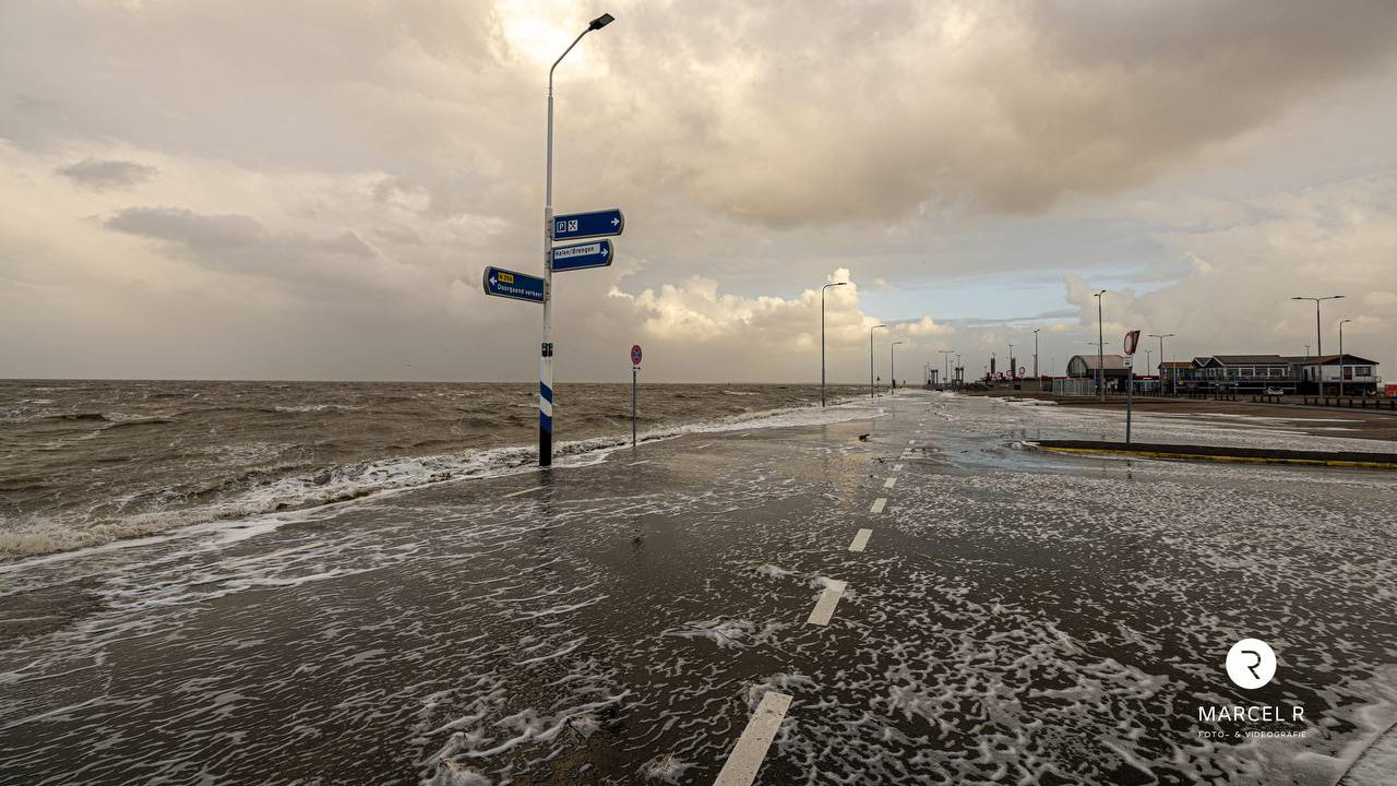 De Provincie Fryslân heeft de Grândyk bij Holwert afgesloten vanwege het hoge water. Dat is de weg die naar de veerdam loopt, waar de boot naar Ameland vertrekt. Ook op andere plekken aan de Waddenkust is het water flink gestegen. Zondagmorgen stonden op meerdere plaatsen kades, fietspaden en parkeerterreinen onder water.